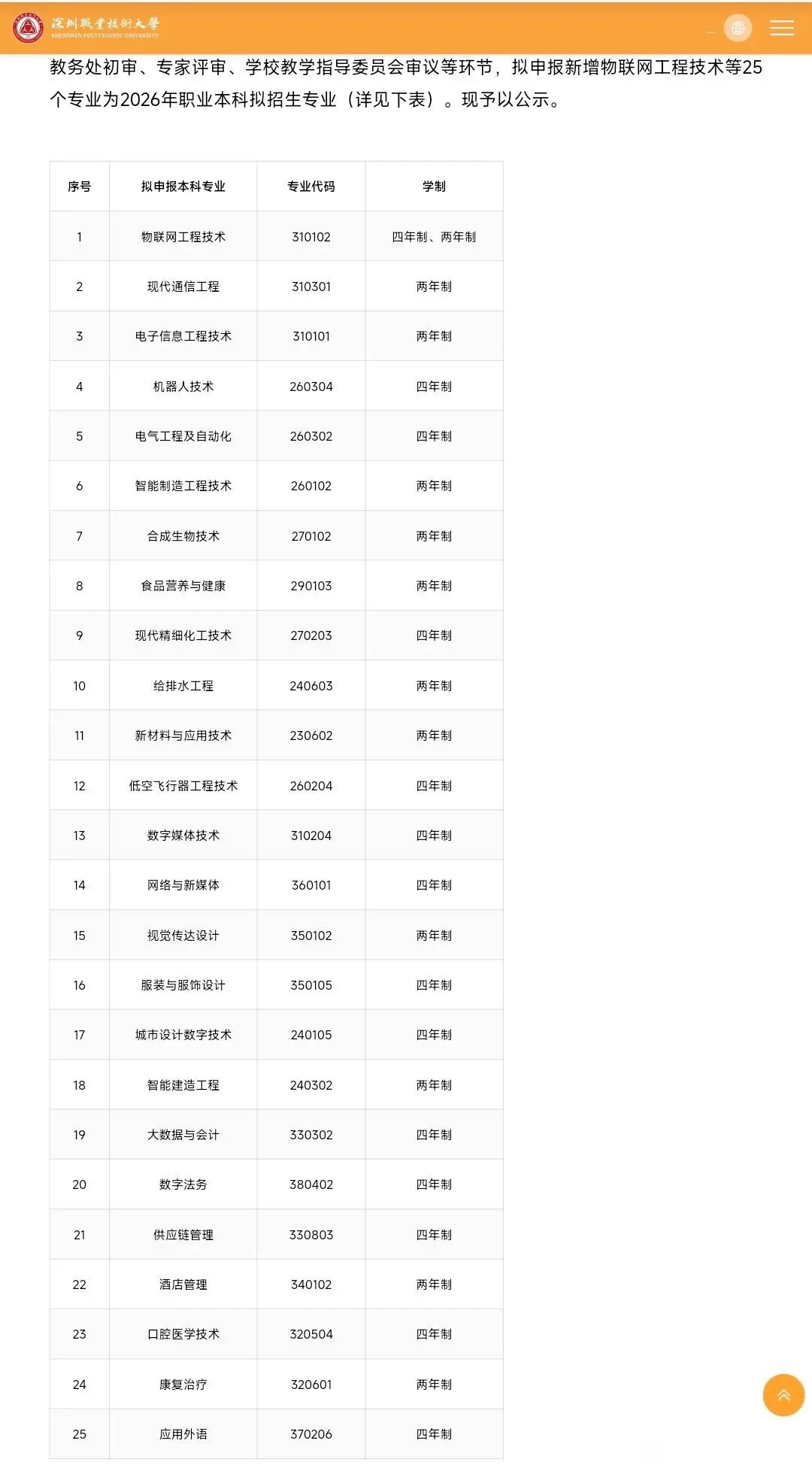 12月12日,深圳職業(yè)技術(shù)大學(xué)發(fā)布《深圳職業(yè)技術(shù)大學(xué)關(guān)于2026年擬新增職業(yè)本科