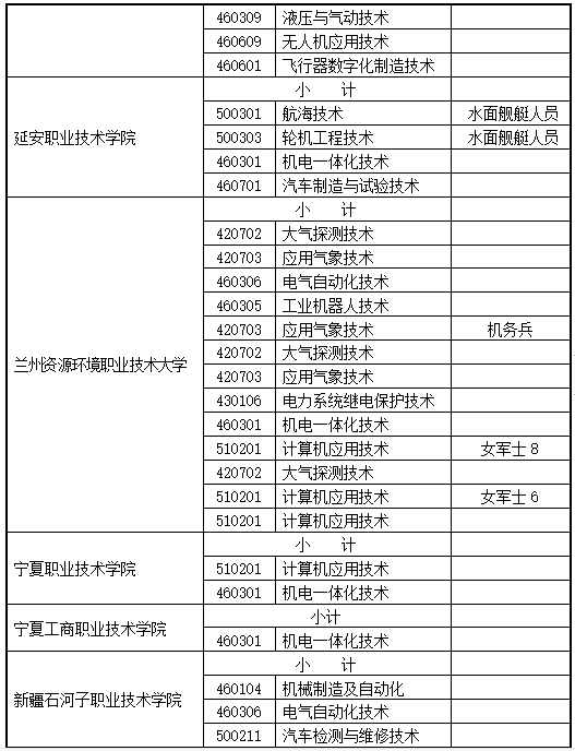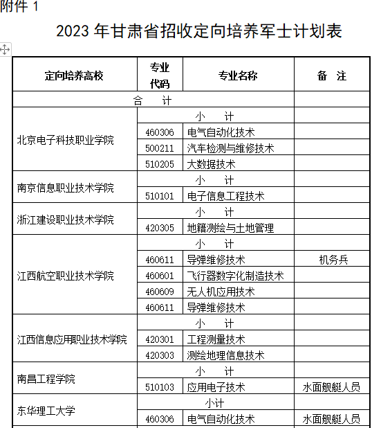 1.2023年甘肅省招收定向培養(yǎng)軍士計劃表