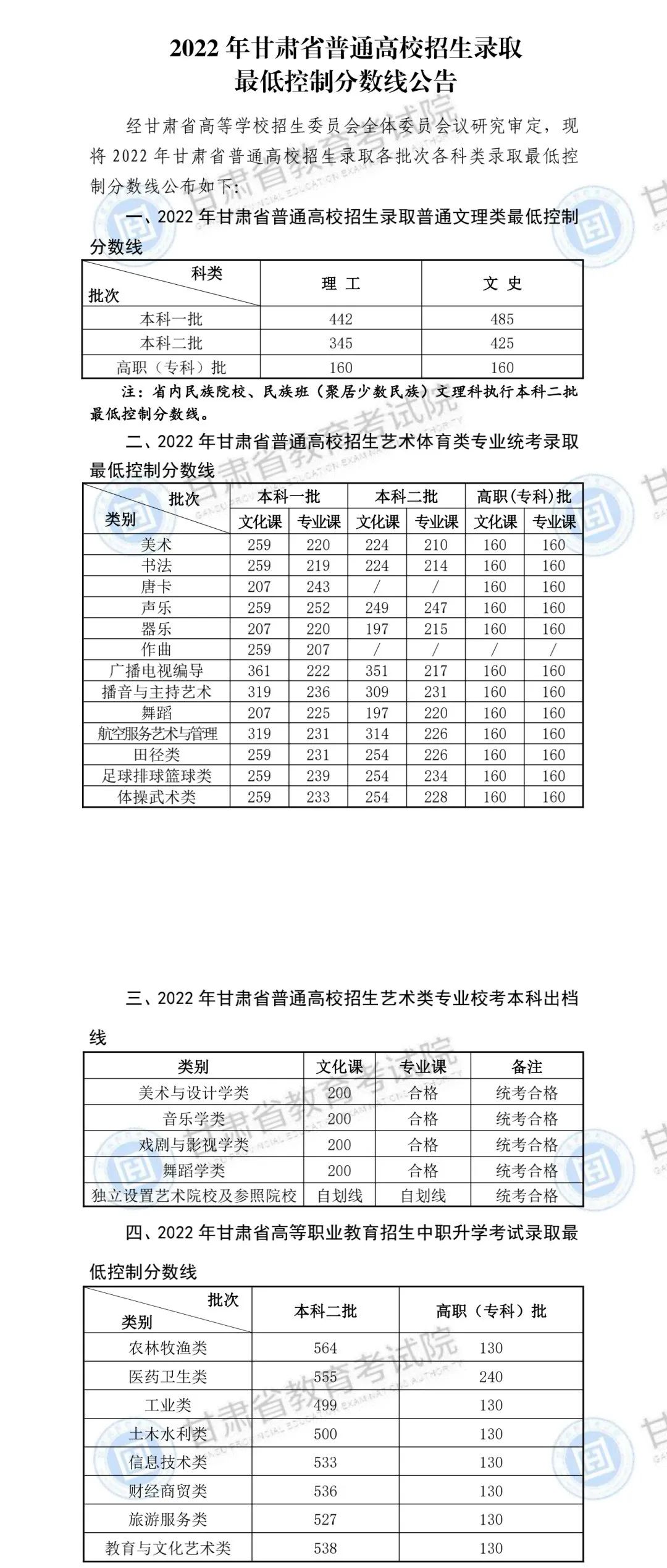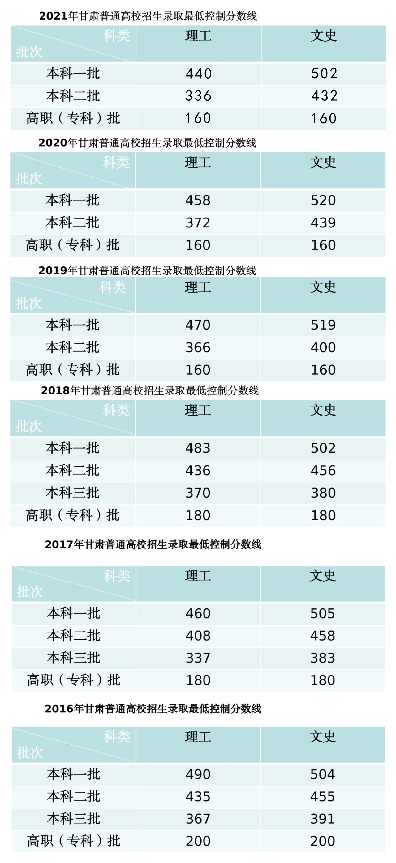 甘肅省歷年高考分數(shù)線(2022年-2016年)