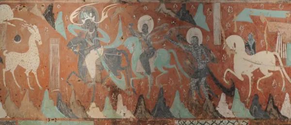 《郊游》敦煌莫高窟第257窟 《鹿王本生圖》是北魏時(shí)期的作品,屬敦煌壁畫早期作品,其造型用線簡練概括,結(jié)構(gòu)清晰合理,構(gòu)圖長卷平鋪,色彩協(xié)調(diào)統(tǒng)一,具有中國傳統(tǒng)審美特點(diǎn),從內(nèi)容到表現(xiàn)手法都體現(xiàn)出中國傳統(tǒng)繪畫最基本的特征。
