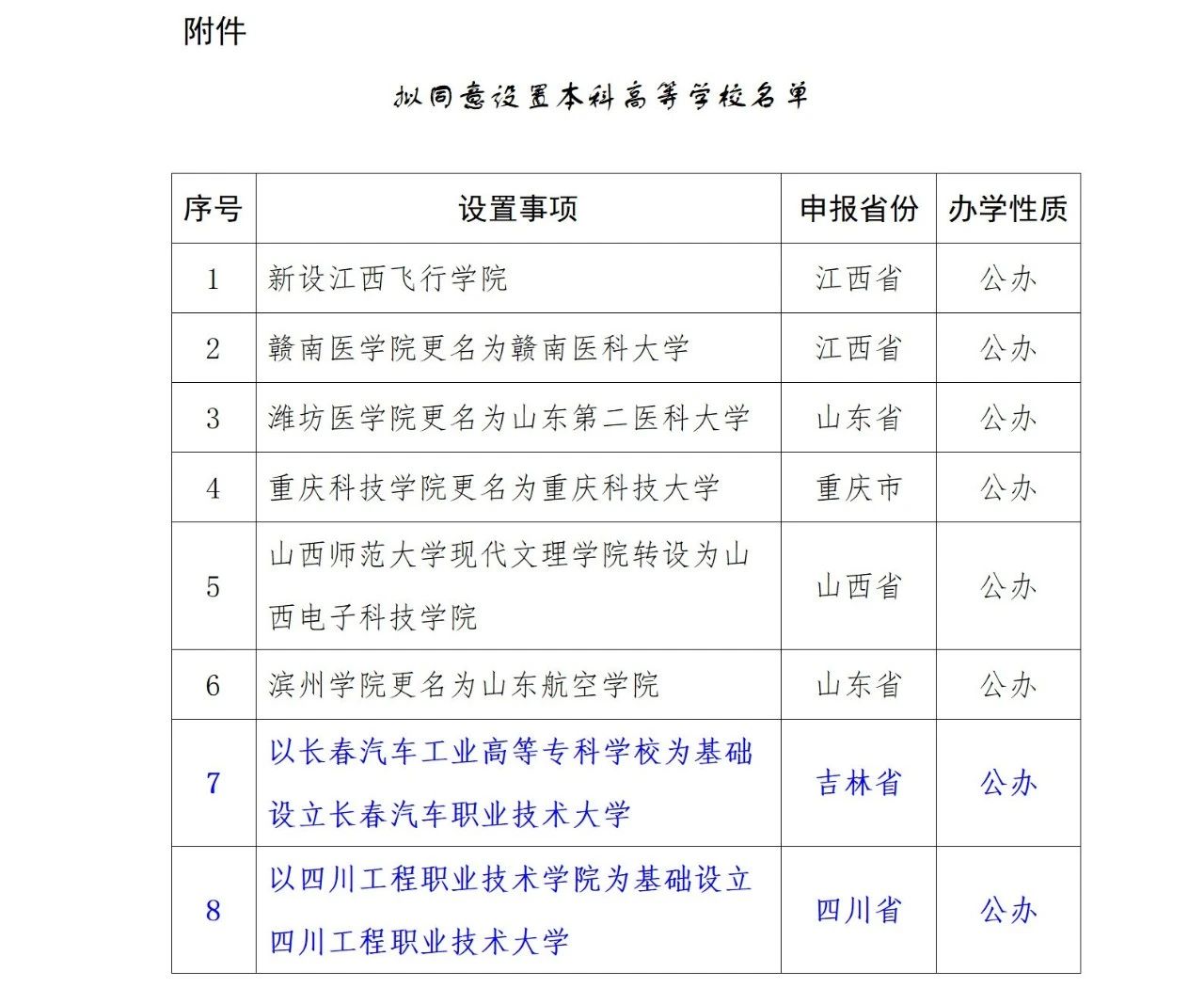 11月6日,教育部公示擬同意設(shè)置本科高等學(xué)校名單,