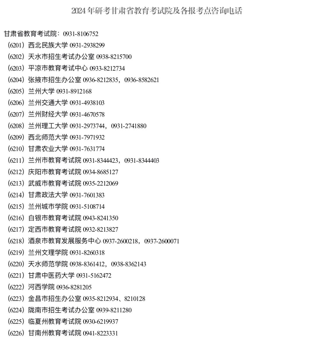 附件:2024年研考甘肅省教育考試院及各報(bào)考點(diǎn)咨詢(xún)電話(huà)