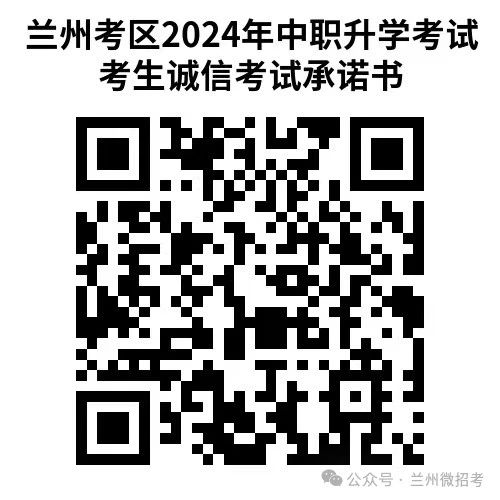 蘭州考區(qū)2024年中職升學(xué)考試考生誠(chéng)信考試承諾書(shū)“二維碼”。