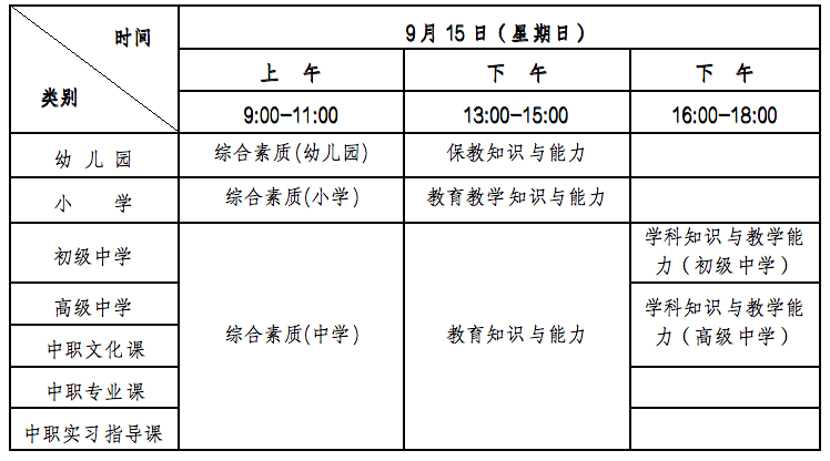 (二)根據(jù)教育部文件精神,報(bào)考小學(xué)、初級中學(xué)、普通高級中學(xué)、中職文化課類別音、體、美專業(yè)的考生,筆試科目一和科目二的代碼為201A、202A、301A、302A,考試內(nèi)容暫與原科目相同。上述考生在筆試報(bào)名時(shí)應(yīng)選報(bào)科目代碼含“A”的科目。取得201A、202A科目合格的考生,面試僅限于參加小學(xué)類別音、體、美專業(yè)科目;取得301A、302A科目合格的考生,面試僅限于參加初中、高中、中職文化課類別音、體、美專業(yè)科目??忌@得201、202、301、302科目合格成績,可相應(yīng)替代201A、202A、301A、302A科目合格成績;考生獲得201A、202A、301A、302A科目合格成績不可替代201、202、301、302科目合格成績。