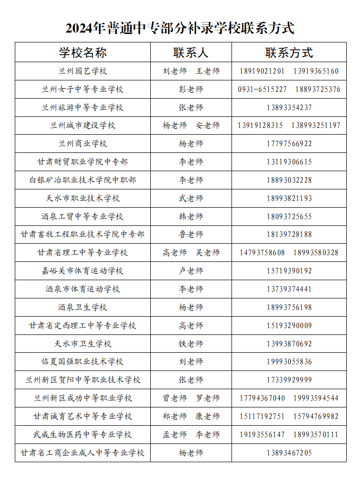 2024年蘭州市普通中專補(bǔ)錄通知