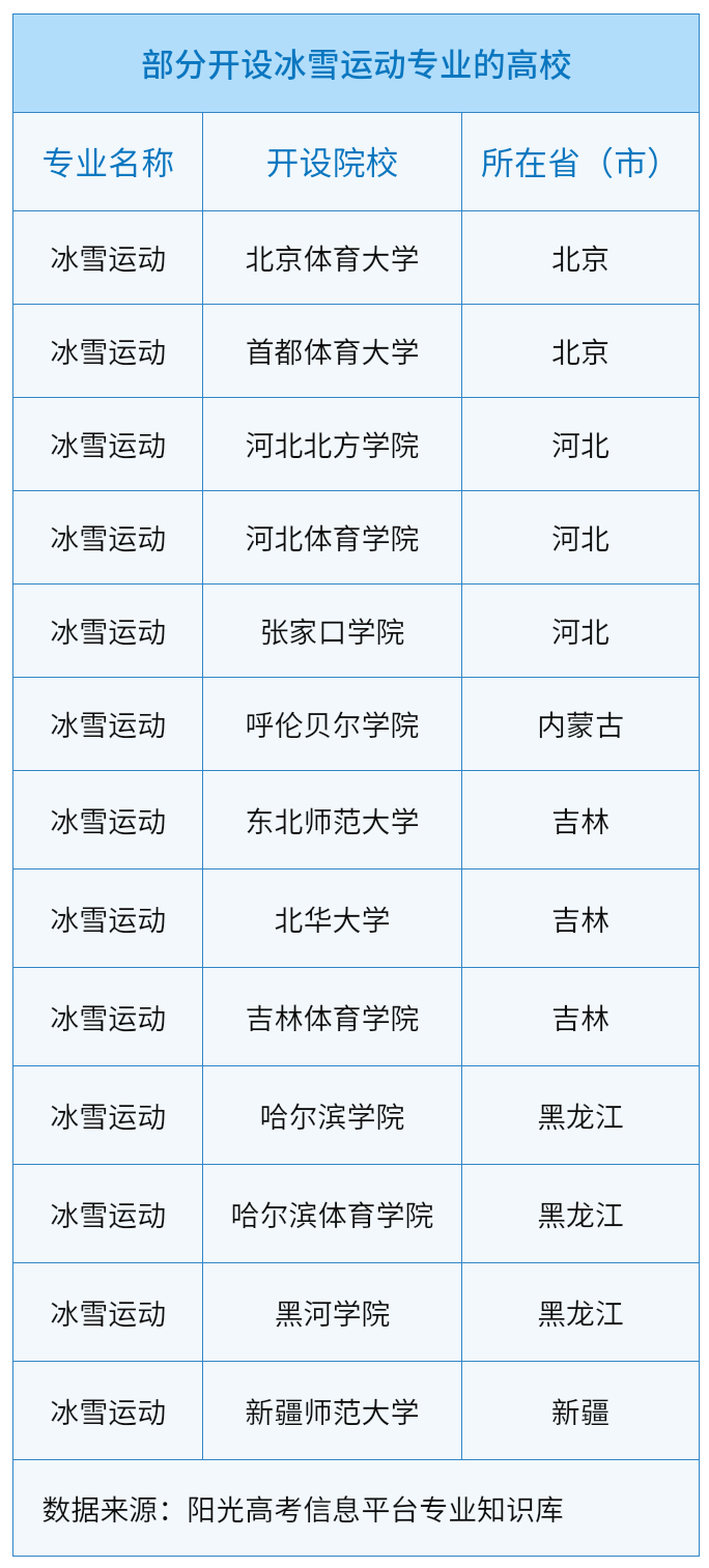 新疆師范大學(xué)也于今年新增體育教育專業(yè)(冰雪運動方向),并進行了首次招生。
