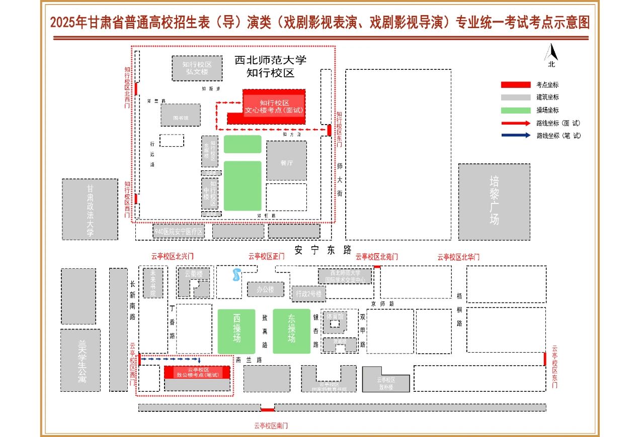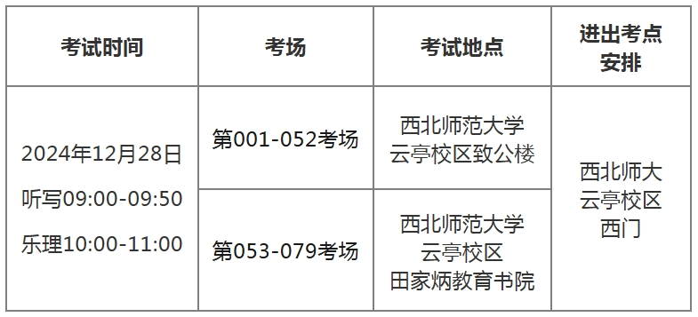 筆試考點(diǎn)設(shè)在西北師范大學(xué)云亭校區(qū)(地址:蘭州市安寧區(qū)安寧東路967號(hào));
