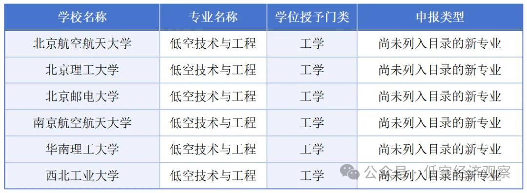 北京航空航天大學(xué)、北京理工大學(xué)、北京郵電大學(xué)、南京航空航天大學(xué)、華南理工大學(xué)、西北工業(yè)大學(xué)等6所高校申請?jiān)鲈O(shè)“低空技術(shù)與工程”新專業(yè)。
