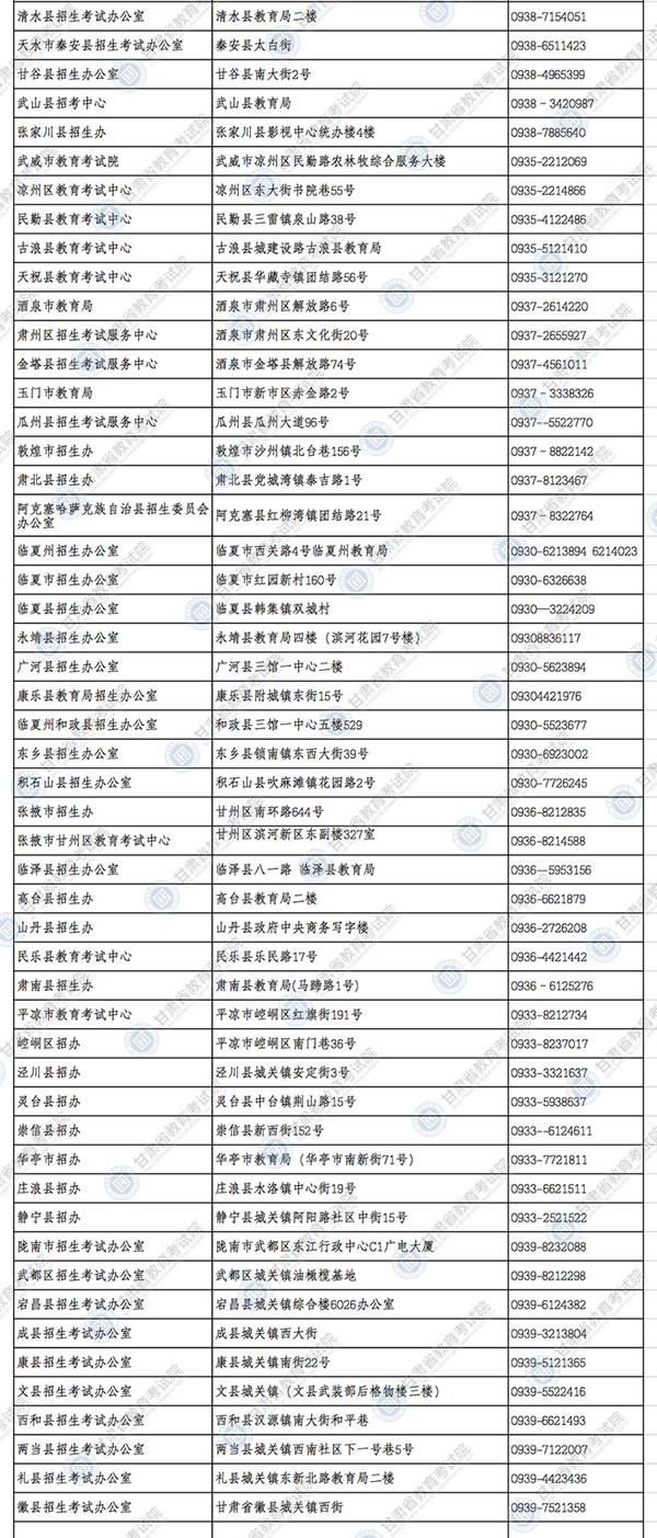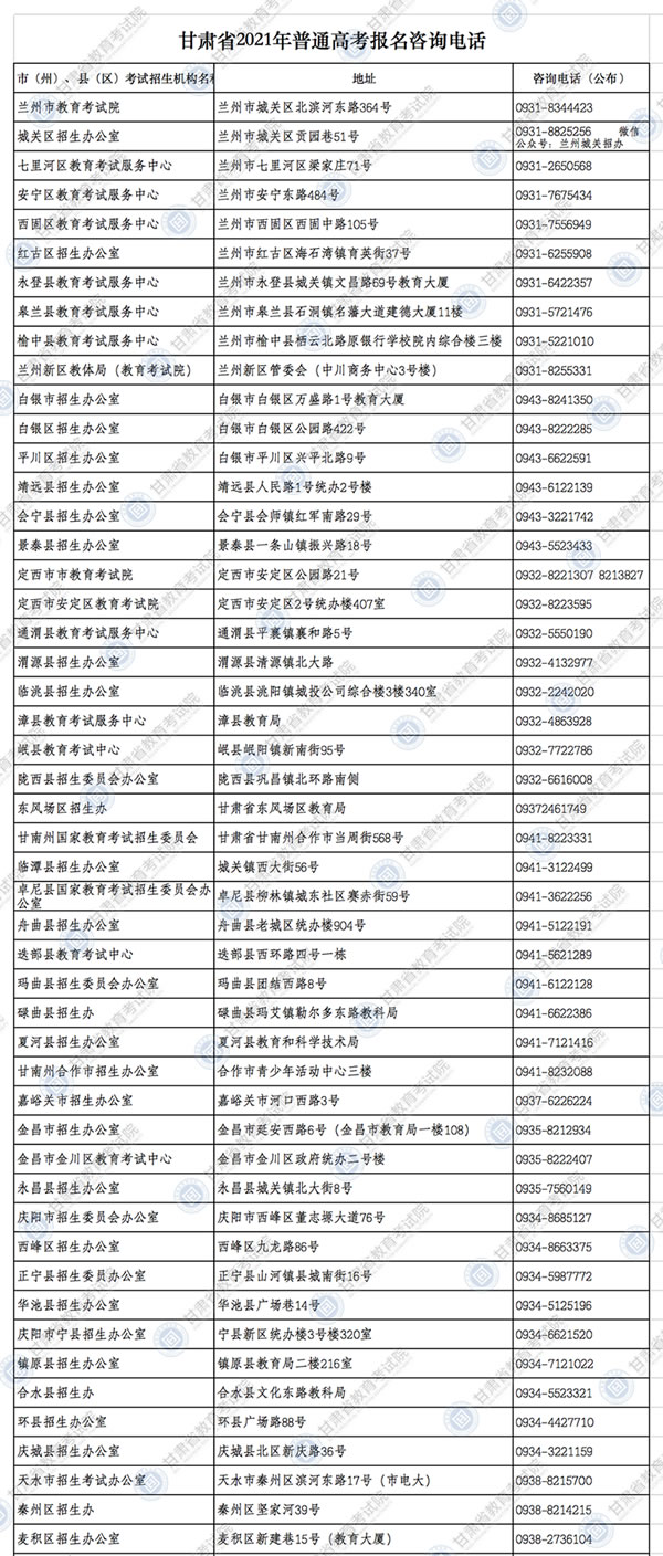 甘肅省2021年普通高考報(bào)名咨詢電話