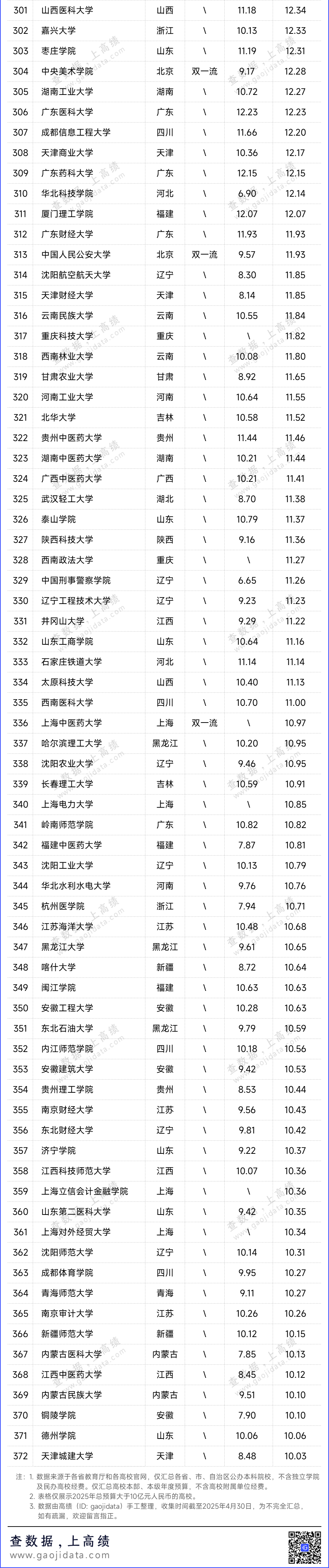 高績(ID:gaojidata)對各高校2025年預(yù)算數(shù)據(jù)進(jìn)行了整理。據(jù)不完全統(tǒng)計,今年全國至少有372所高校總經(jīng)費(fèi)超過10億元,其中29所高校總經(jīng)費(fèi)超100億元。總經(jīng)費(fèi)排名前十的高校分別為:清華大學(xué)、浙江大學(xué)、上海交通大學(xué)、北京大學(xué)、哈爾濱工業(yè)大學(xué)、中山大學(xué)、復(fù)旦大學(xué)、同濟(jì)大學(xué)、西安交通大學(xué)、北京理工大學(xué)。