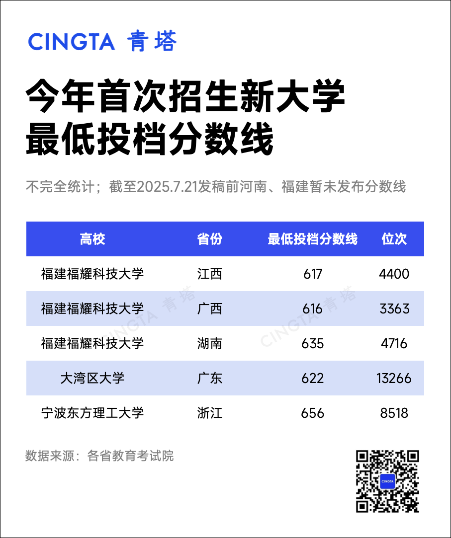 2025年本科普通批院校專業(yè)組投檔最低分數(shù)線。今年首次招生的新大學——