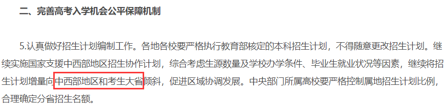 結(jié)合這兩項(xiàng)國(guó)家層面的通知,可以確定,身處中西部考生大省的學(xué)生(包含農(nóng)村地區(qū)),未來(lái)上大學(xué)的概率將大大增加!