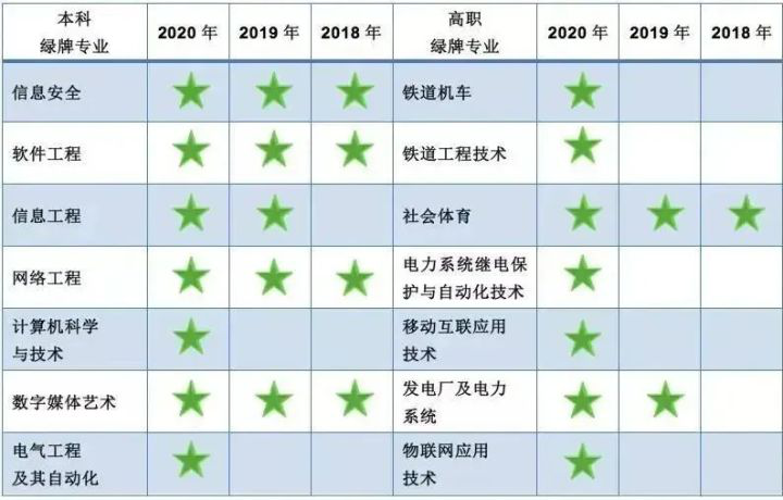綠牌專業(yè)指的是失業(yè)量較小,就業(yè)率、薪資和就業(yè)滿意度綜合較高的專業(yè),為需求增長型專業(yè)。行業(yè)需求增長是造就綠牌專業(yè)的主要因素,連續(xù)綠牌說明相關(guān)專業(yè)就業(yè)優(yōu)勢具有持續(xù)性。
