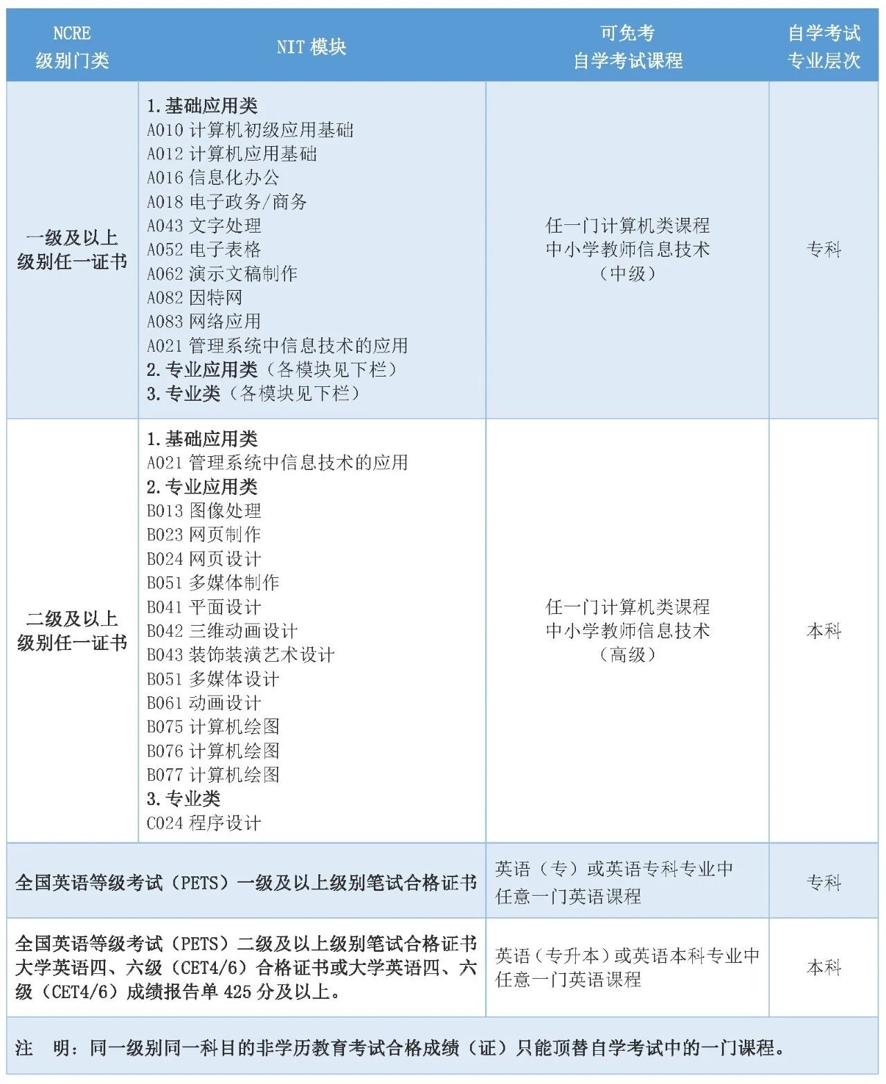 國(guó)家級(jí)非學(xué)歷教育考試項(xiàng)目合格證免考自學(xué)考試課程對(duì)照表