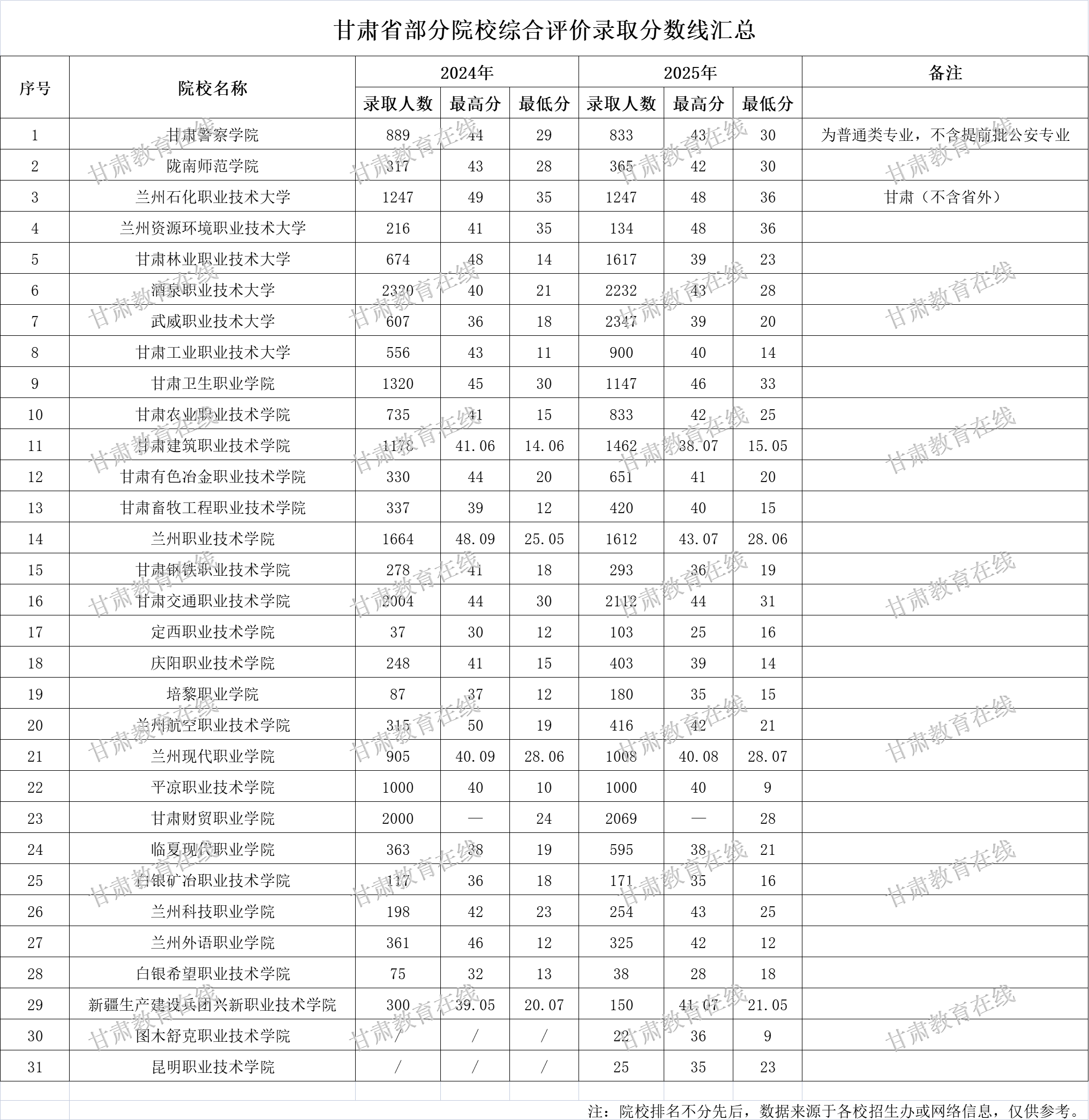 甘肅省部分院校綜合評(píng)價(jià)錄取分?jǐn)?shù)線(xiàn)匯總