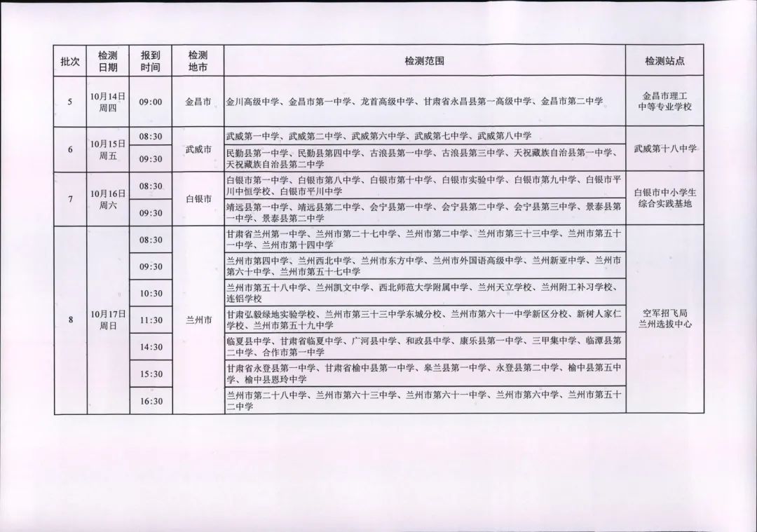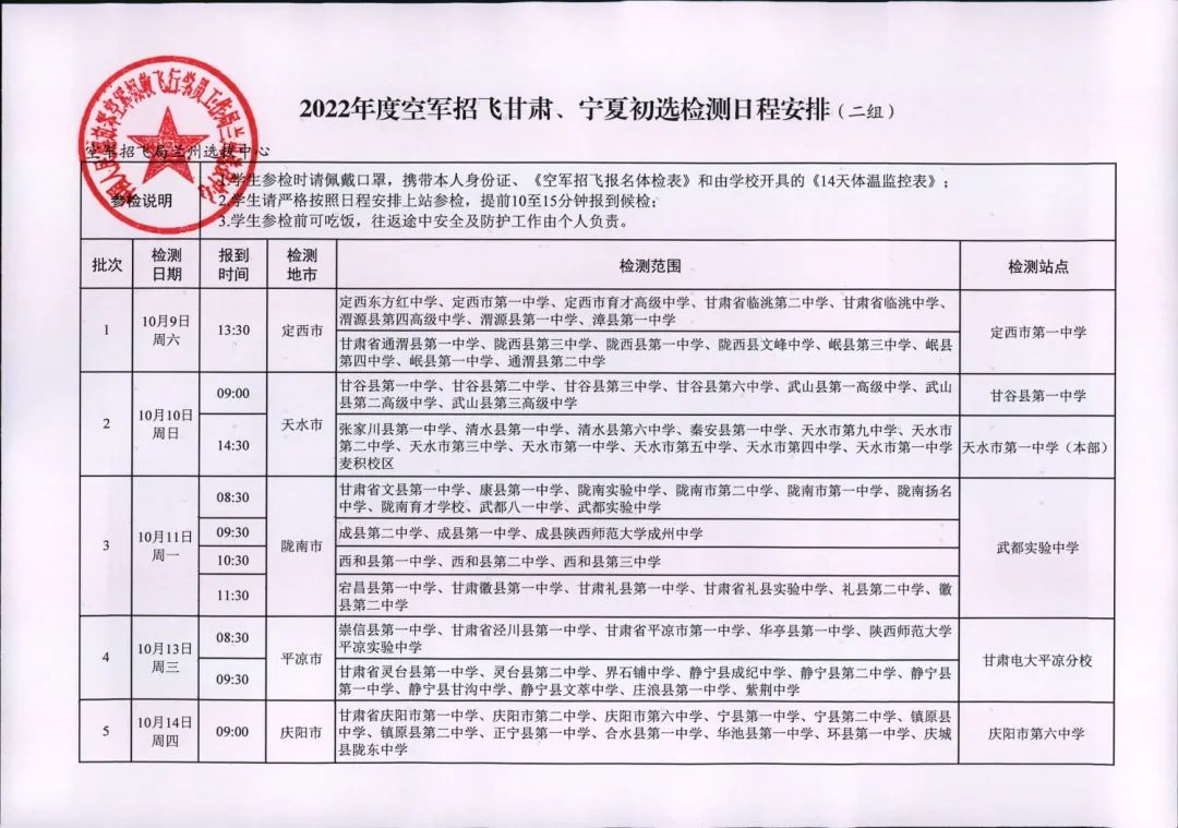 2022年度空軍招飛甘肅、青海初選檢測(cè)日程安排