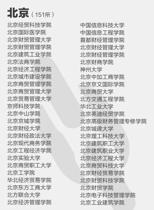 根據(jù)教育部公布名單顯示,截至2020年6月30日,全國高等學(xué)校共計3005所,其中:普通高等學(xué)校2740所,含本科院校1258所、高職(??疲┰盒?strong>1482所;成人高等學(xué)校265所。本名單未包含港澳臺地區(qū)高等學(xué)校。這些學(xué)校都屬于正規(guī)大學(xué),由國家承認其性質(zhì)。具體可以通過以下方式查詢:1. 教育部門戶網(wǎng)站和官方微信公眾號“微言教育”,考生和家長可以通過登錄教育部官網(wǎng)或在官微“微言教育”“高校名單”欄目進行查詢核實。2. 中國教育在線門戶網(wǎng)站“正規(guī)大學(xué)名單”查詢識別下方二維碼即可查看3005所正規(guī)大學(xué)名單!