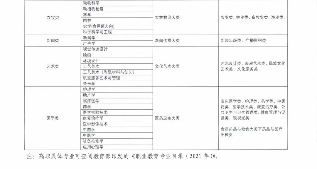 (二)招生專業(yè)。由招生院校按照教育部《普通高等學(xué)校本科專業(yè)目錄(2020年)》和《職業(yè)教育專業(yè)目錄(2021年)》確定擬招收的本科(含職業(yè)本科)二級(jí)專業(yè)。重點(diǎn)向支撐產(chǎn)業(yè)轉(zhuǎn)型升級(jí)、社會(huì)需求旺、就業(yè)前景好的領(lǐng)域傾斜。