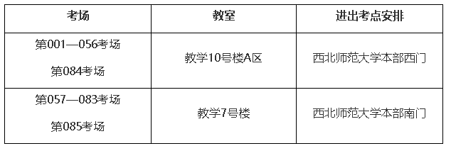 (一)2022年甘肅省普通高校招生戲劇與影視學(xué)類專業(yè)統(tǒng)一考試筆試考場安排