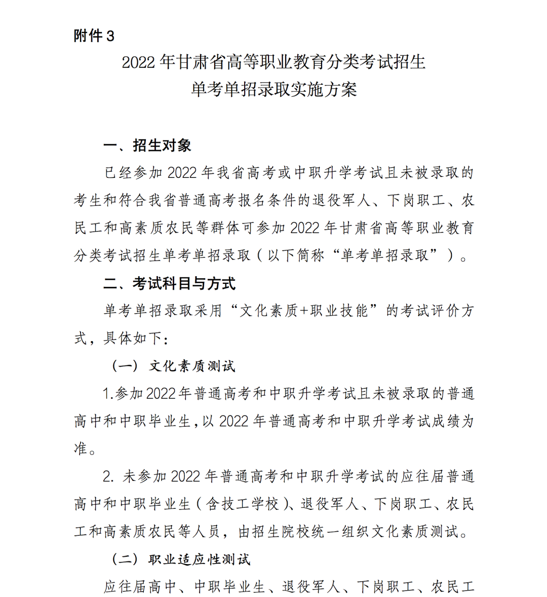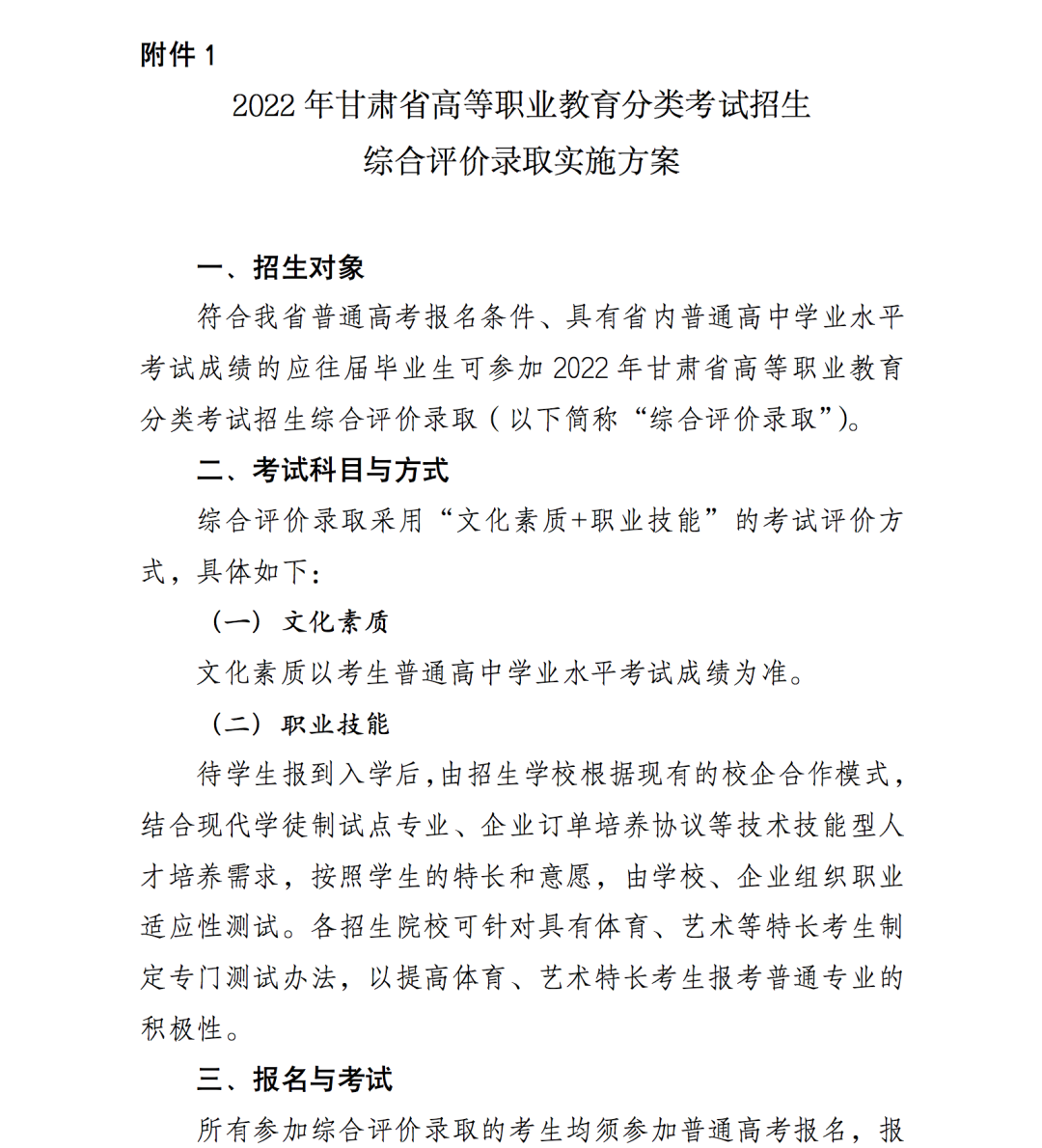 1.2022年甘肅省高等職業(yè)教育分類考試招生綜合評價錄取實(shí)施方案