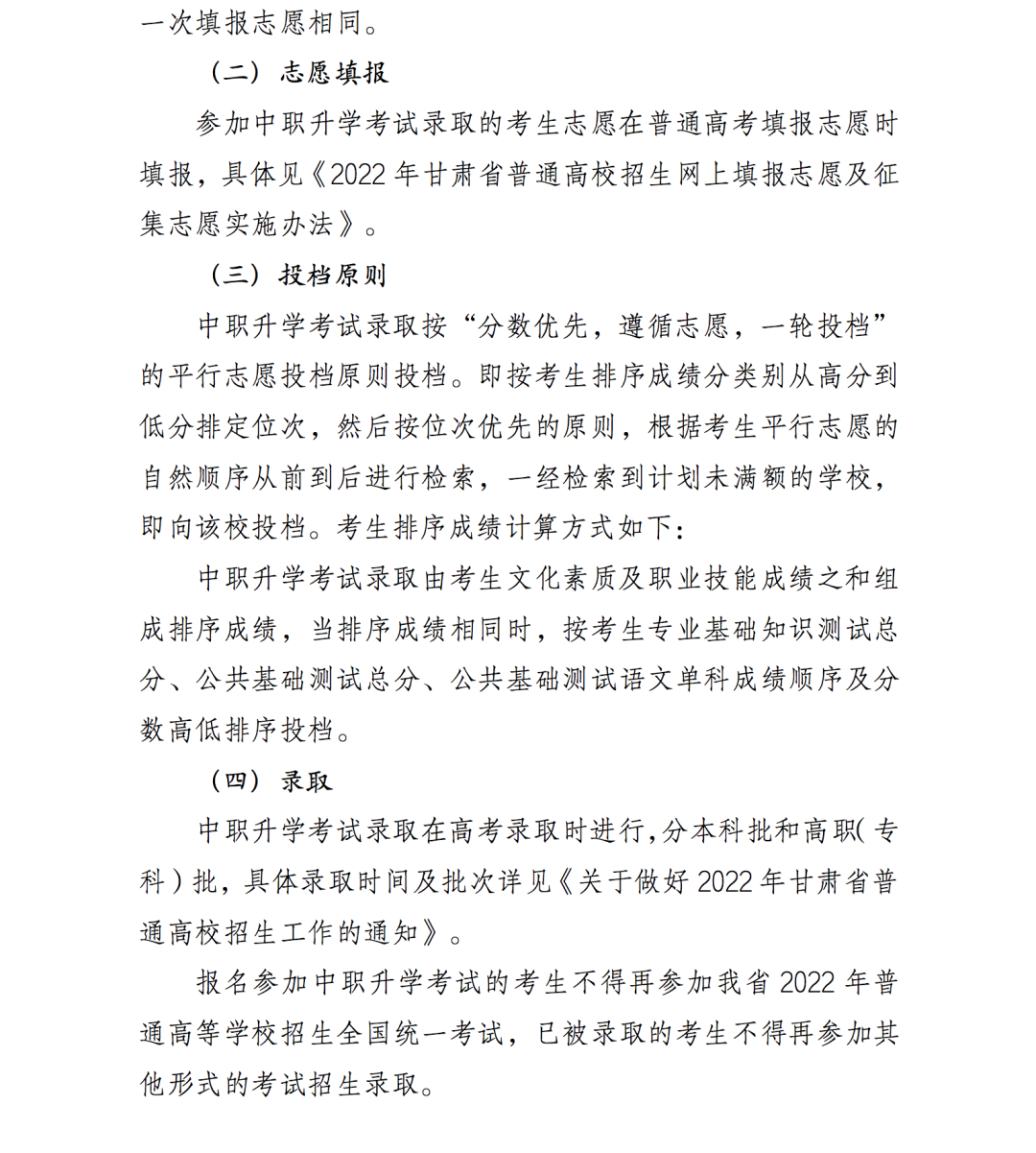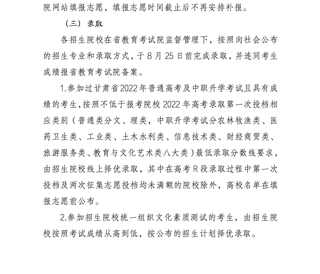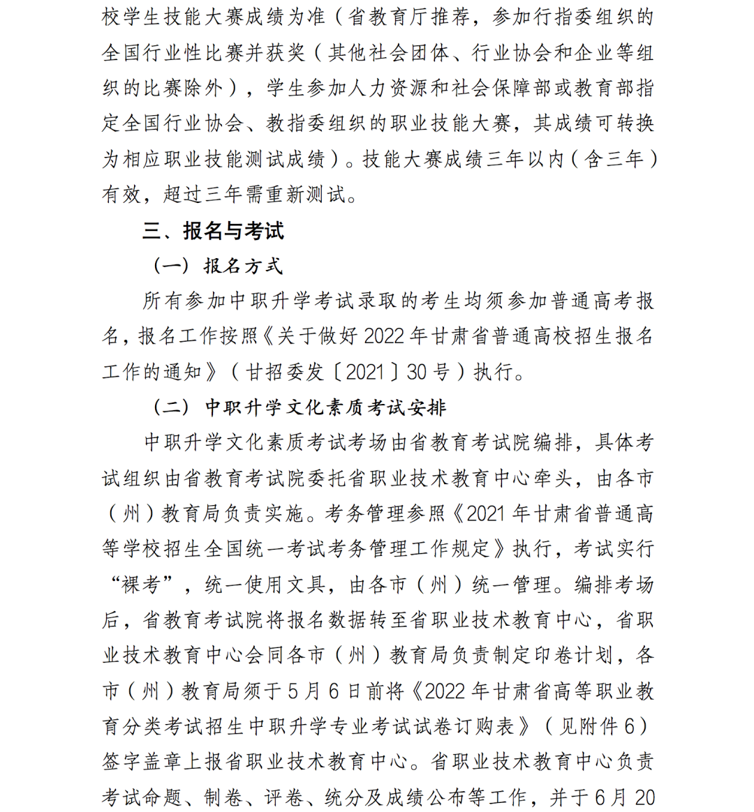 2.2022年甘肅省高等職業(yè)教育分類考試招生中職升學(xué)考試錄取實(shí)施方案