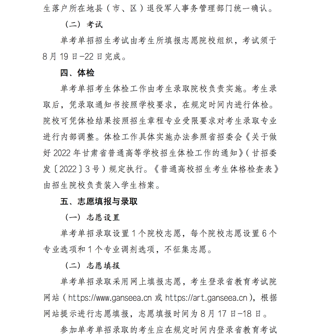 3.2022年甘肅省高等職業(yè)教育分類考試招生單考單招實(shí)施方案