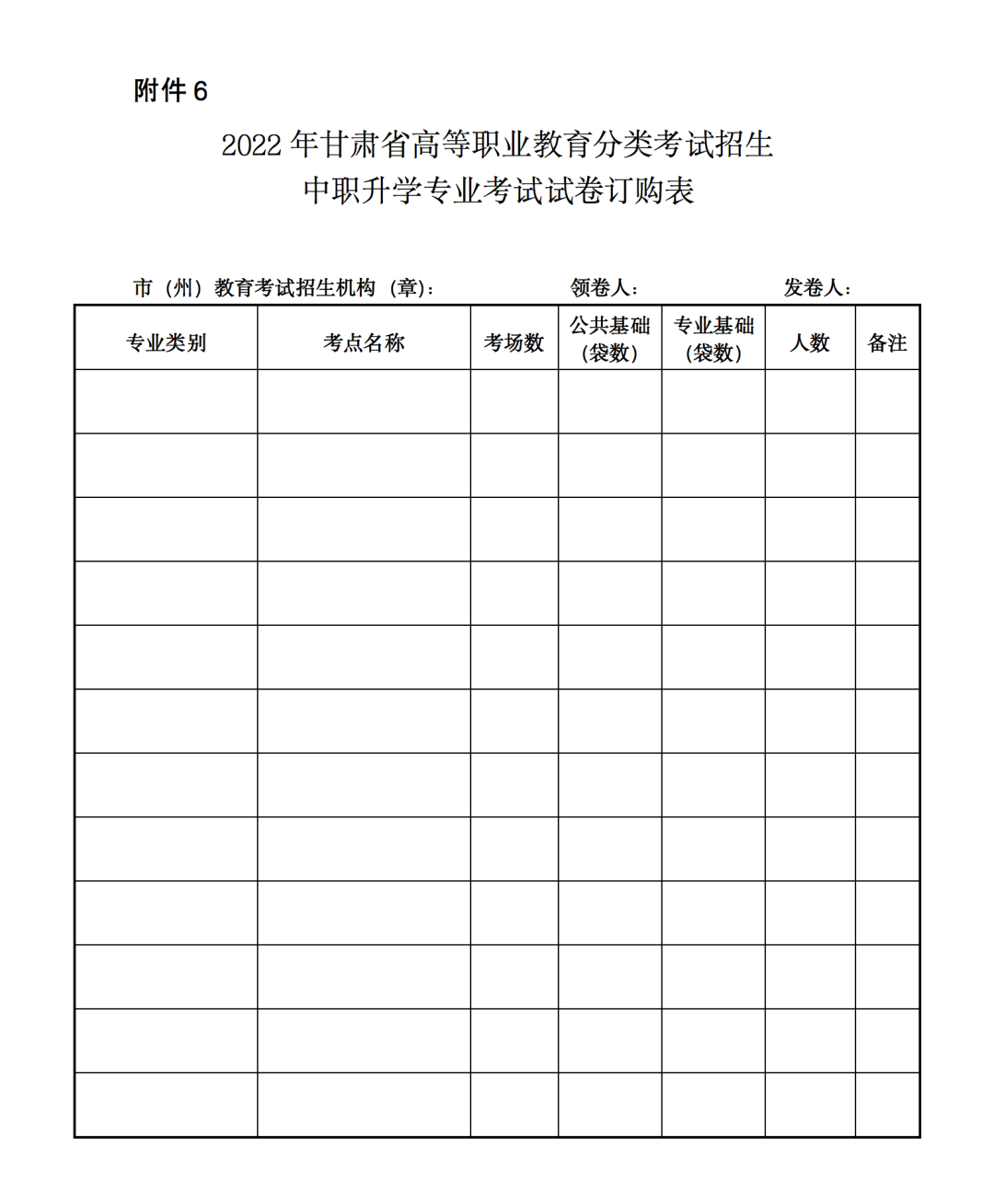 6.2022年甘肅省高等職業(yè)教育分類考試招生中職考試試卷訂購表