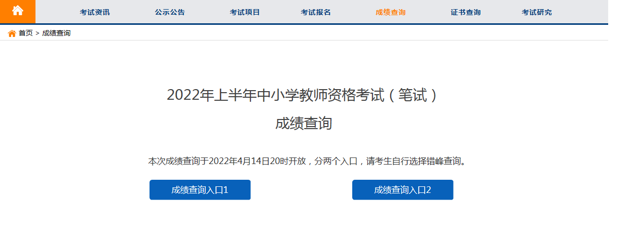 2022年上半年中小學(xué)教師資格考試(筆試)成績查分入口已于2022年4月14日20點起開放,請考生錯峰查詢。