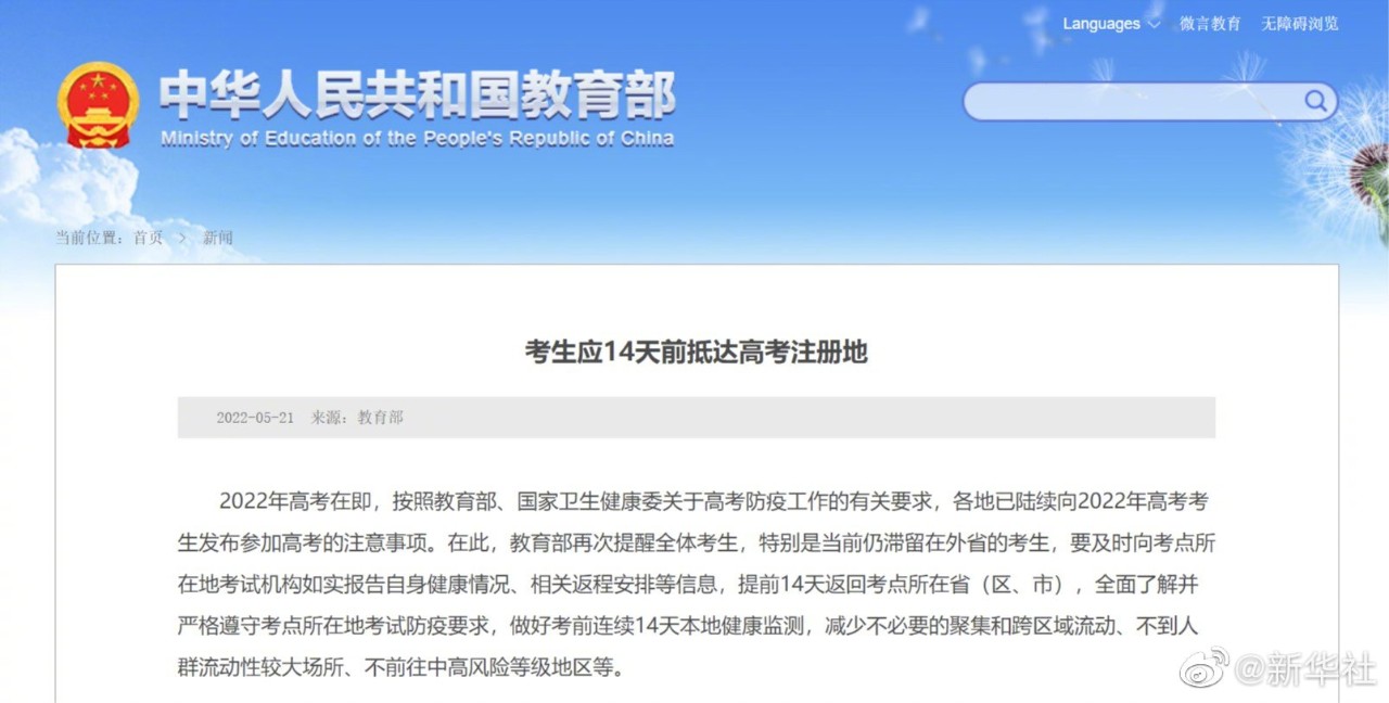 在此,教育部再次提醒全體考生,
