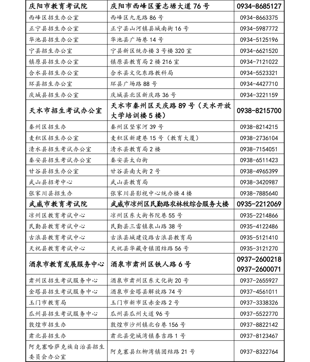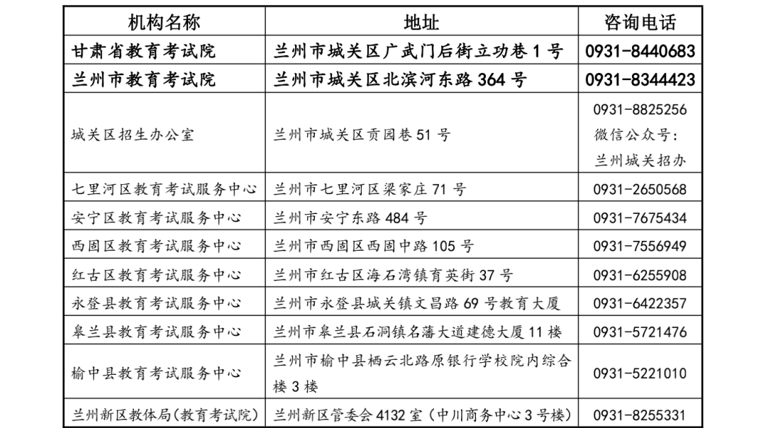 2022 年甘肅省各級教育考試招生機(jī)構(gòu)咨詢服務(wù)聯(lián)系方式