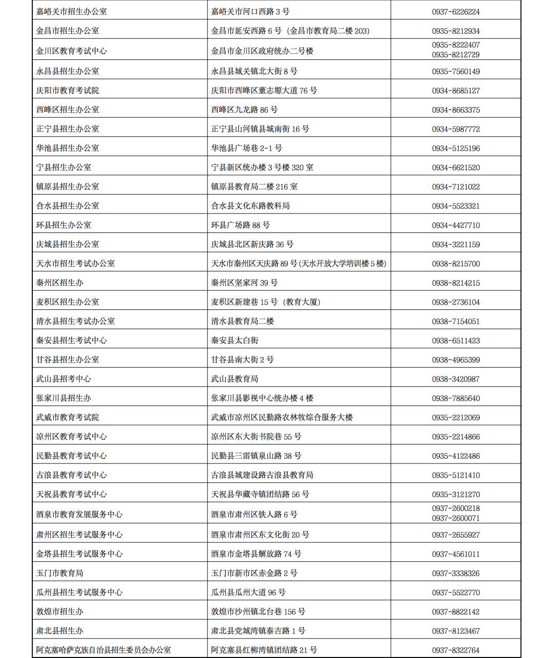 甘肅省2023年普通高考報(bào)名咨詢電話