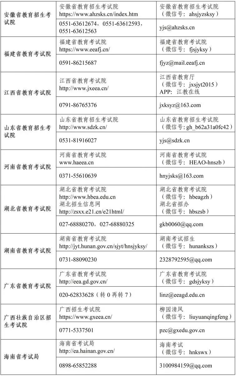 省級(jí)教育招生考試機(jī)構(gòu)網(wǎng)站、公眾號(hào)、咨詢電話和郵箱等信息匯總