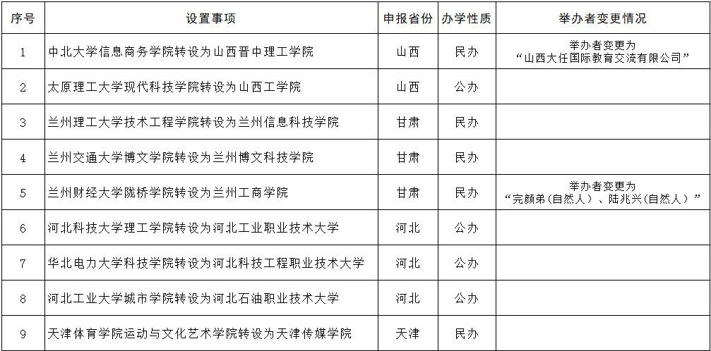 教育部發(fā)展規(guī)劃司表示,根據(jù)《高等教育法》《普通高等學校設置暫行條例》《普通本科學校設置暫行規(guī)定》和《關于加快推進獨立學院轉設工作的實施方案》等法律法規(guī)政策規(guī)定,經(jīng)第七屆全國高等學校設置評議委員會專家考察和評議,并經(jīng)黨組會審議,