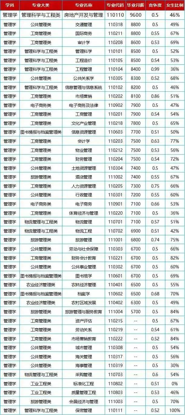 老師是很多家長喜歡的職業(yè),他們都希望自己的孩子可以有一份穩(wěn)定、有保障的工作,而且老師有寒暑假,因此師范類專業(yè)成為女生報考的熱門專業(yè)。師范類專業(yè)包括很多,如數(shù)學(xué)、漢語言文學(xué)、英語、日語、學(xué)前教育等。一般而言,護(hù)理學(xué)專業(yè)的女生是特別多的,基本上一個班級95%以上都是女生。不僅如此,許多教護(hù)理專業(yè)的老師也大多都是女生。我國男生當(dāng)護(hù)士的還是比較少見的。據(jù)說有些會計專業(yè)的班級男女比例比護(hù)理學(xué)的還夸張。甚至可以說是一門女生的學(xué)科。過去會計專業(yè)非常熱門,但是近幾年會計行業(yè)逐漸趨于飽和狀態(tài),但是還是不能阻止家長和考生對它的喜愛。小語種近幾年都比較熱門,小語種專業(yè)也是近幾年比較熱門的一個專業(yè),而且女生學(xué)習(xí)語言類專業(yè),有天生的優(yōu)勢。如果能力較強,還可以到一些中外合資的企業(yè)從事翻譯的工作,工資待遇也比較可觀。全國普通高校就業(yè)狀況報告中,畢業(yè)生初次就業(yè)率數(shù)據(jù)統(tǒng)計,德語、法語、西班牙語排名前10位。管理學(xué)也是女生容易扎堆報考的專業(yè)。女生相對比較細(xì)心,在決策運營方面的統(tǒng)籌管理更有優(yōu)勢一些。像這種所謂的“坐辦公室”的職業(yè),也是家長比較喜歡的。管理學(xué)包括酒店管理、行政管理、人力資源管理、工商管理、市場營銷等。其實會計學(xué)也屬于管理學(xué)大類,但是比較典型,就單獨拎出來說了。管理學(xué)45個專業(yè)畢業(yè)生薪酬一覽: