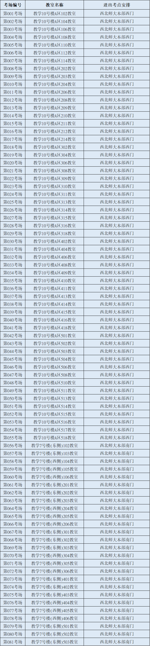 (一)2021年甘肅省普通高校招生戲劇與影視學(xué)類專業(yè)統(tǒng)一考試筆試考場安排