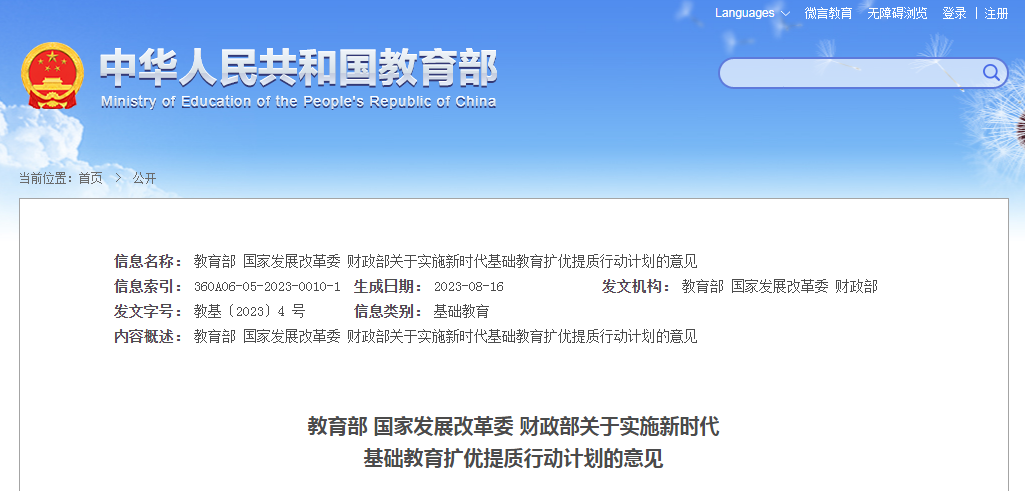 “普通高中內(nèi)涵建設(shè)行動(dòng),主要解決普通高中多樣發(fā)展不充分、部分縣中水平不高以及群眾職普分流焦慮問(wèn)題?!?月30日,教育部新聞發(fā)布會(huì)上,在介紹教育部等三部門聯(lián)合印發(fā)的《關(guān)于實(shí)施新時(shí)代基礎(chǔ)教育擴(kuò)優(yōu)提質(zhì)行動(dòng)計(jì)劃的意見(jiàn)》(以下簡(jiǎn)稱《擴(kuò)優(yōu)提質(zhì)行動(dòng)》)時(shí),教育部基礎(chǔ)教育司司長(zhǎng)田祖蔭說(shuō)道。
