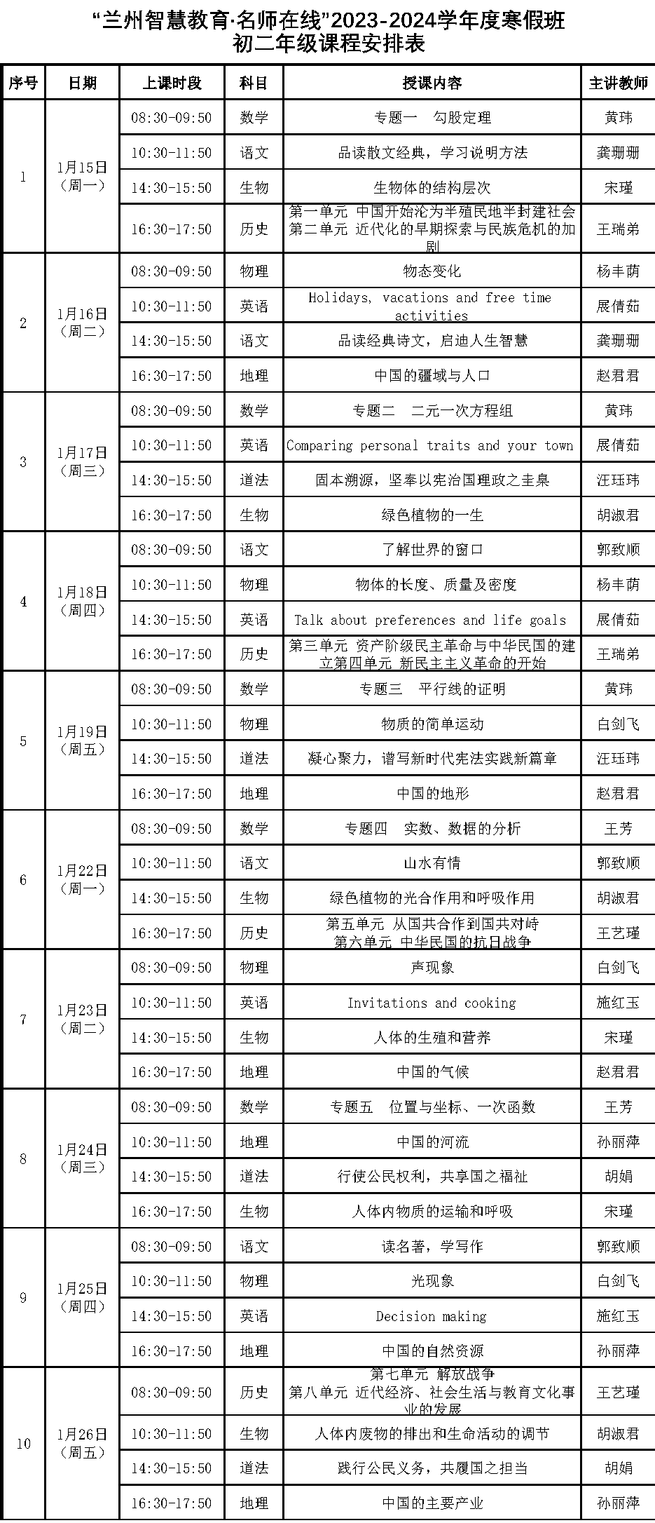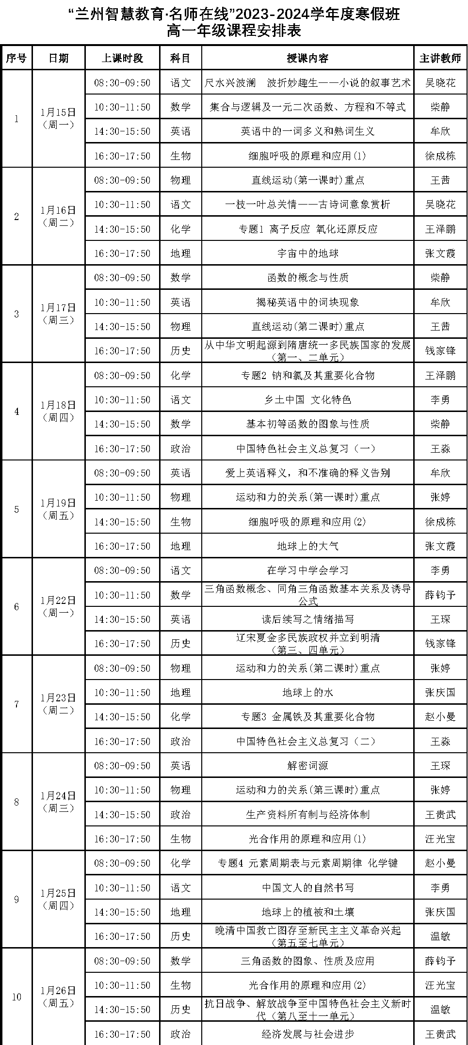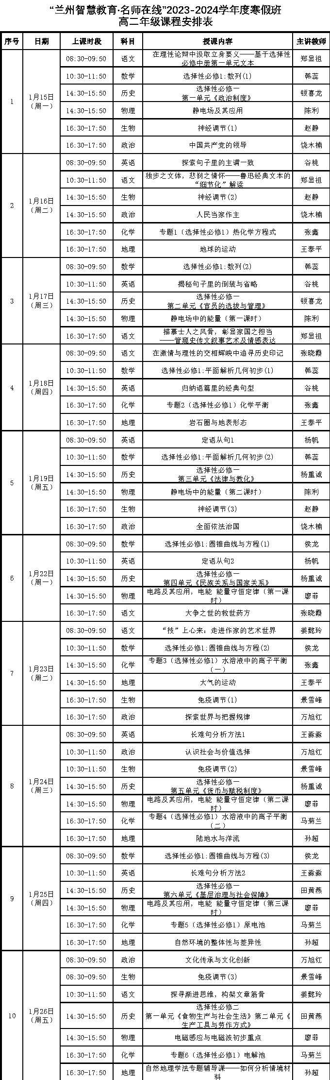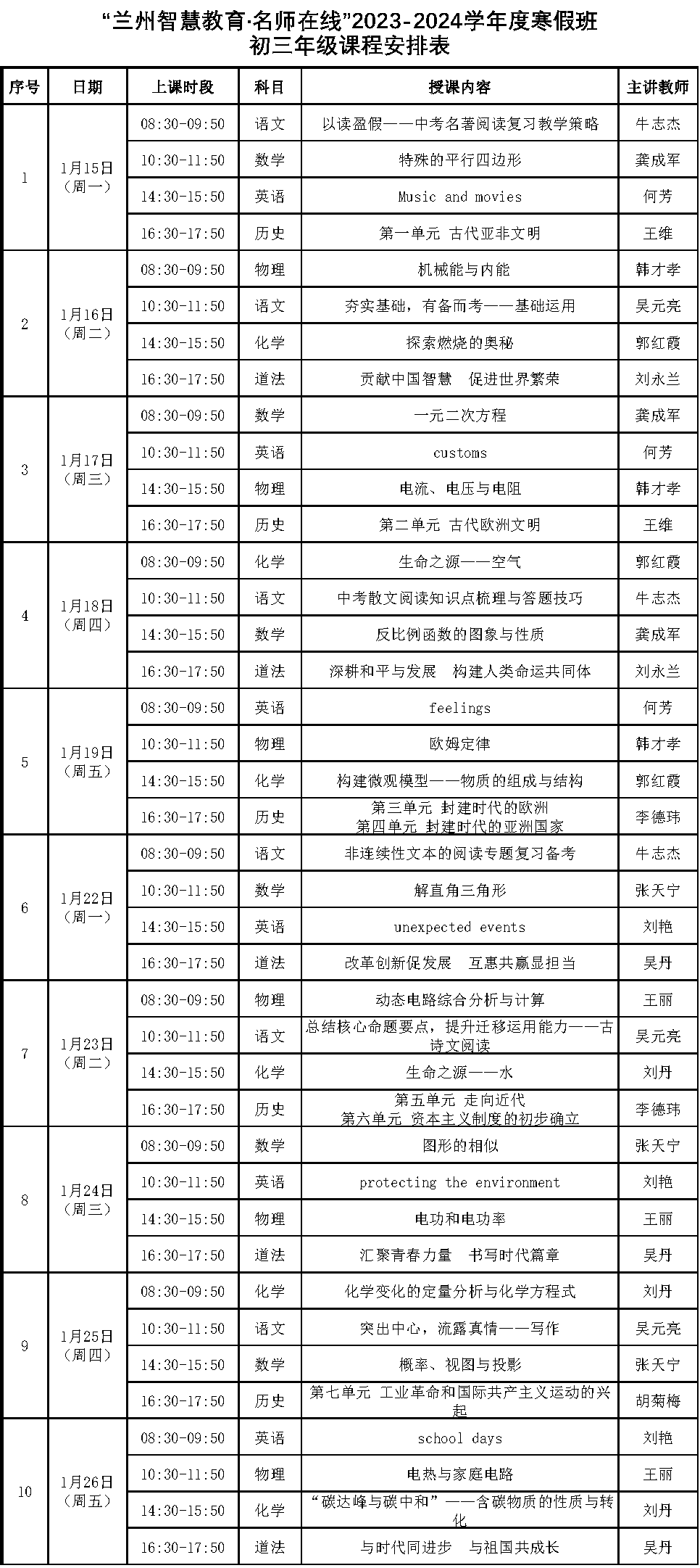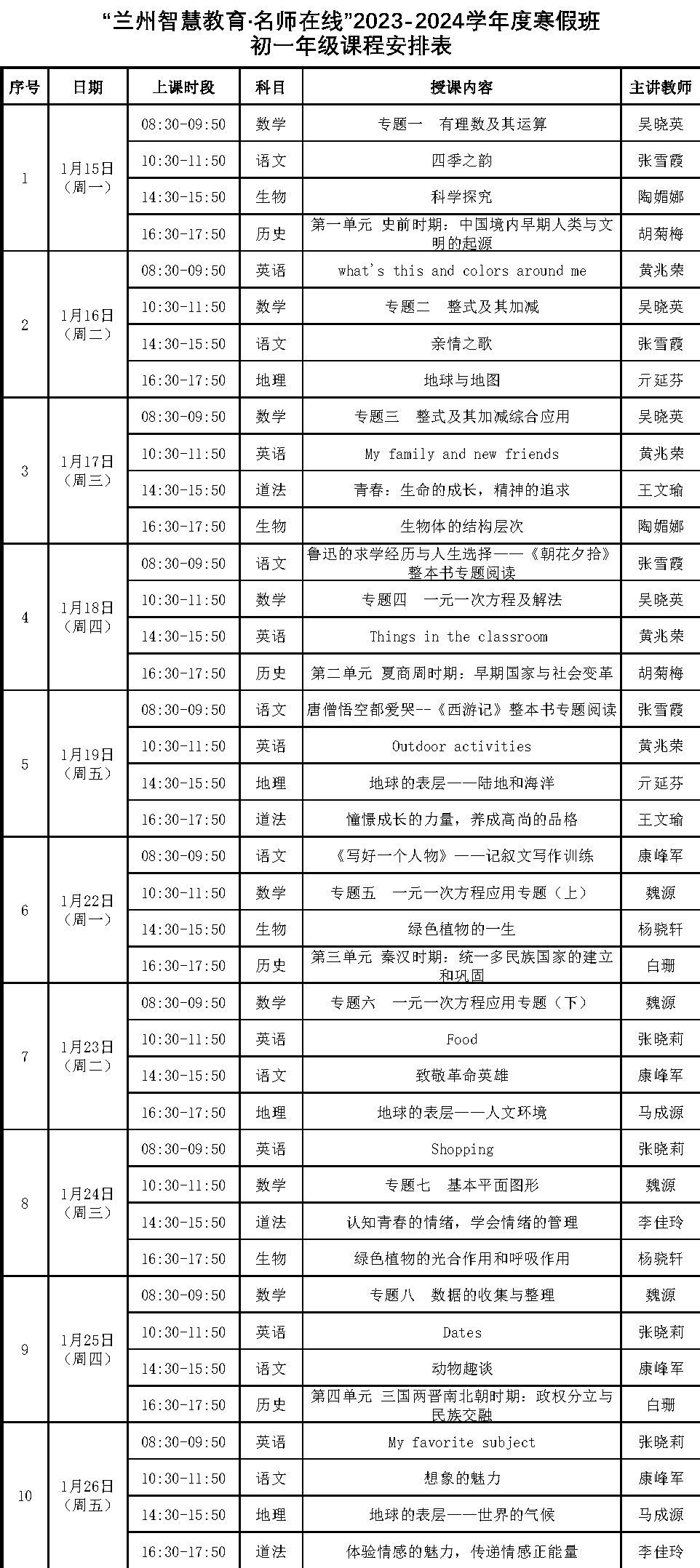經(jīng)過一個學期緊張忙碌的學習生活后,蘭州市中小學生將迎來寒假。為輔助學生假期鞏固課業(yè),“蘭州智慧教育·名師在線”2023-2024學年度寒假公益類課程將于1月15日正式開播。
