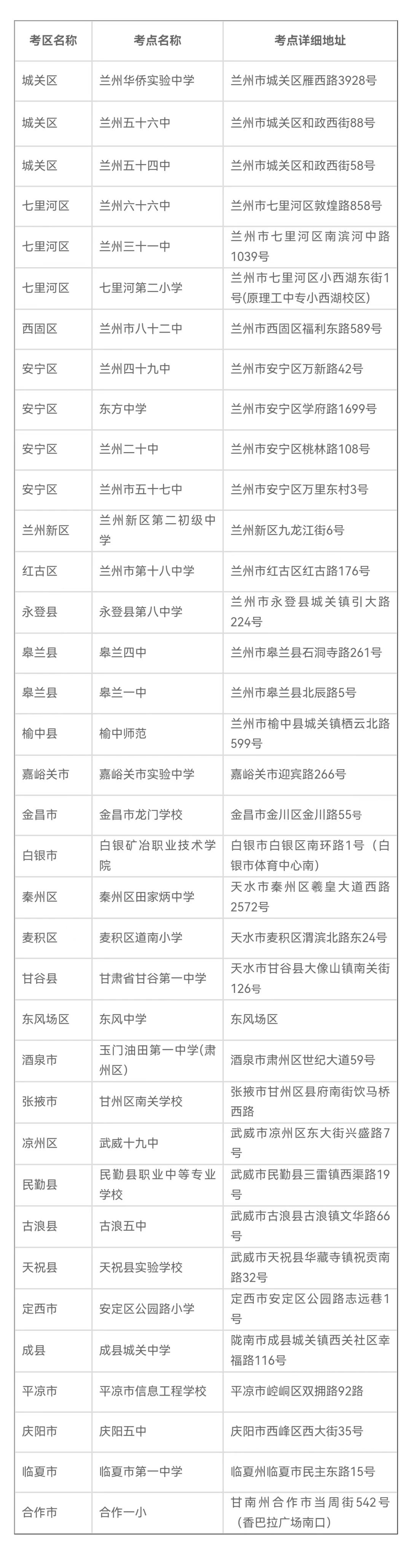 2024年上半年甘肅省高等教育自學(xué)考試考點(diǎn)地址統(tǒng)計(jì)表