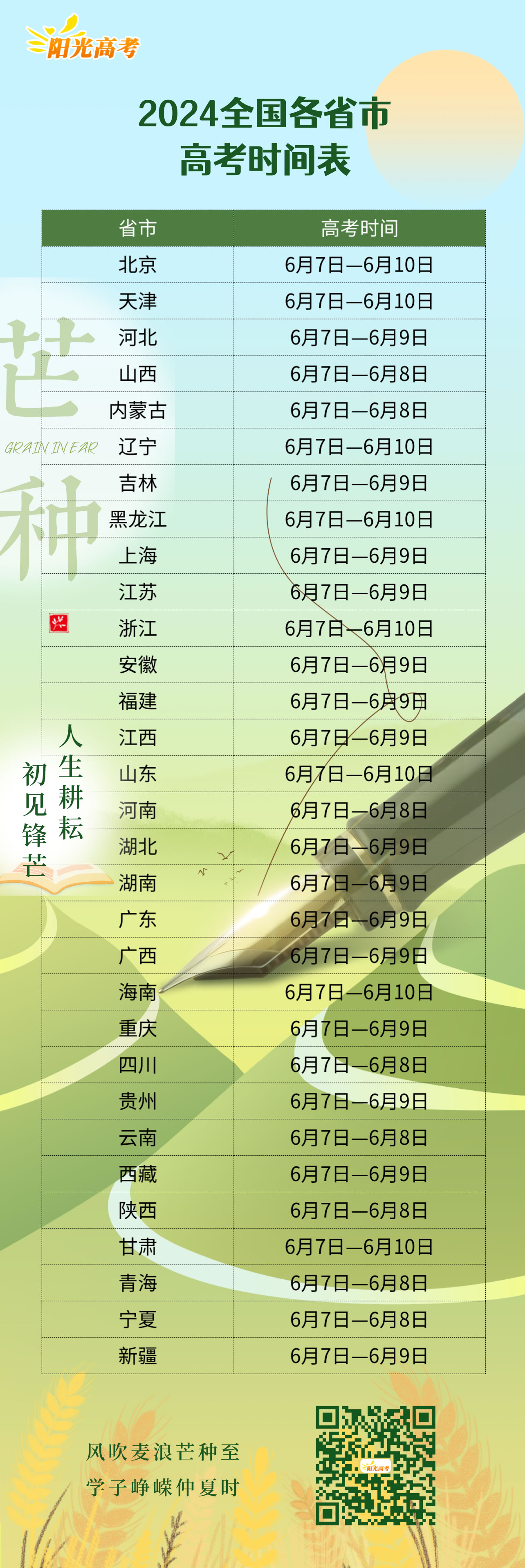 2024全國各省市高考時間表