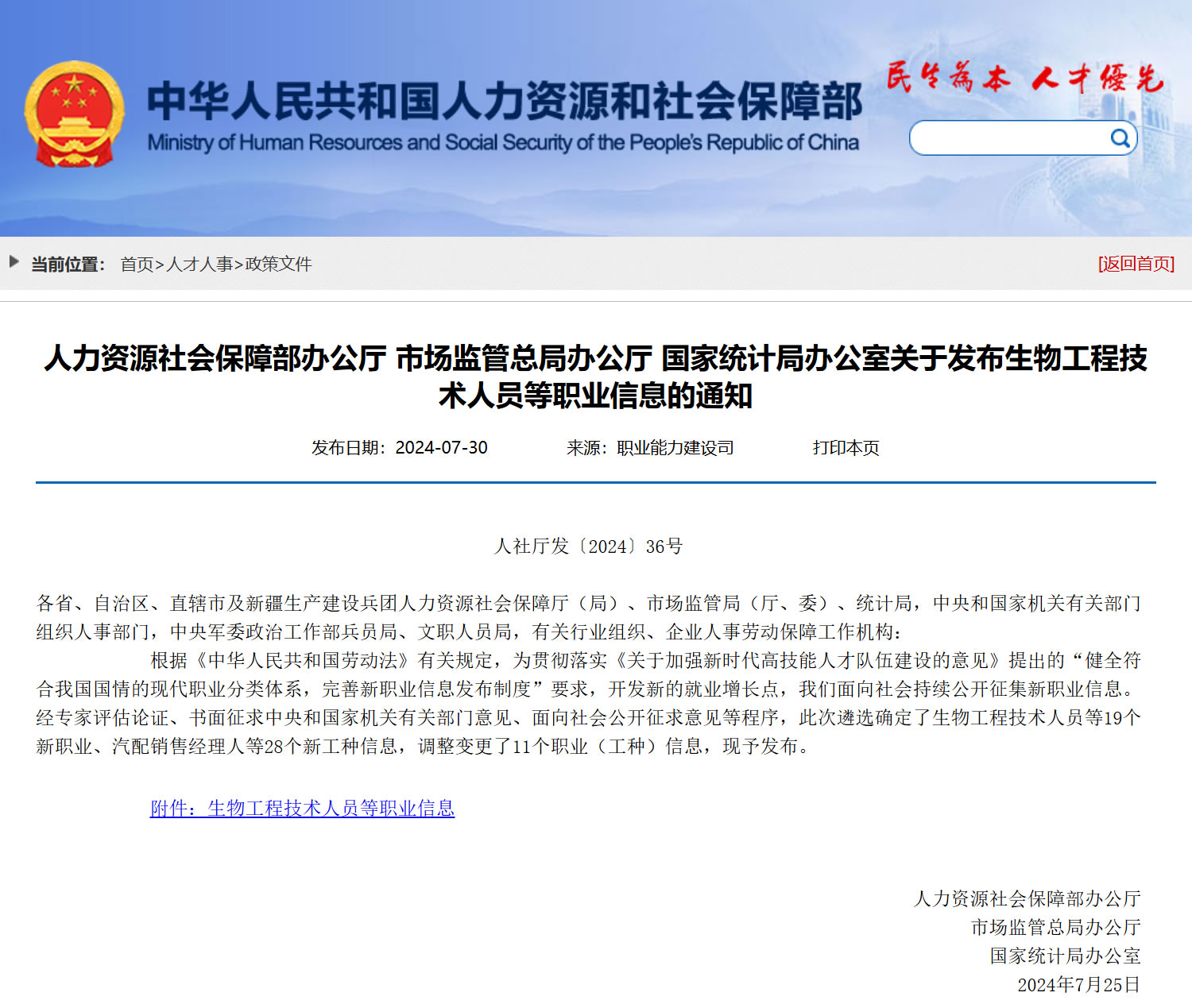 根據(jù)人社部2024年7月30日消息,人力資源和社會保障部會同國家市場監(jiān)督管理總局、國家統(tǒng)計局正式發(fā)布了關于發(fā)布生物工程技術人員等職業(yè)信息的通知,宣布網(wǎng)絡主播成為國家新職業(yè)之一。