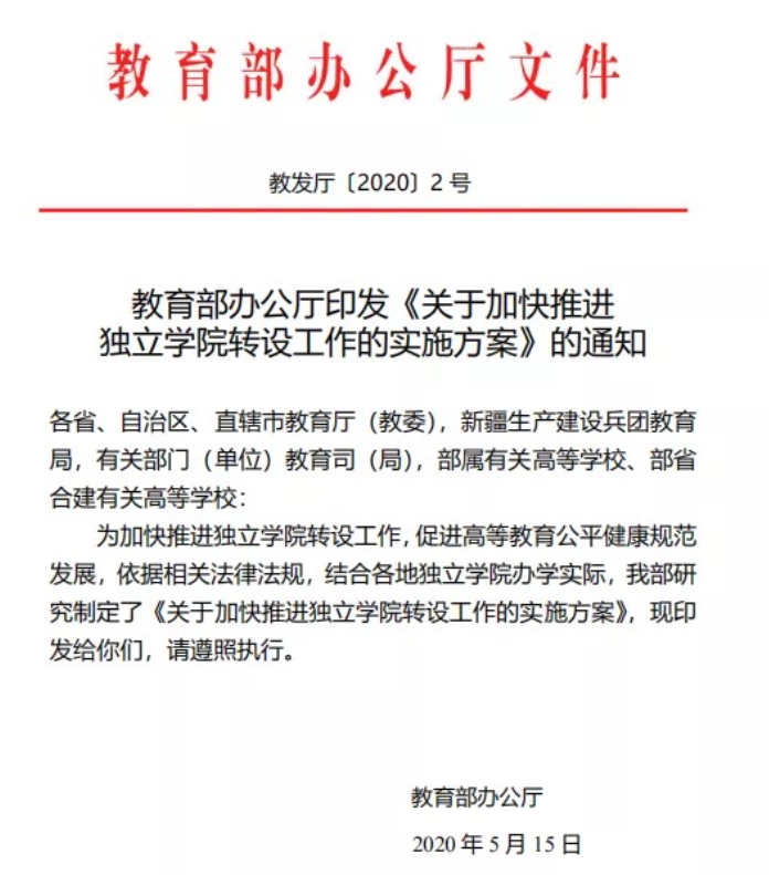 在教育部2020年至今發(fā)布的轉(zhuǎn)設(shè)公告中,已經(jīng)有兩所獨(dú)立學(xué)院被撤銷建制,兩所獨(dú)立學(xué)院以終止辦學(xué)的形式完成轉(zhuǎn)設(shè)。