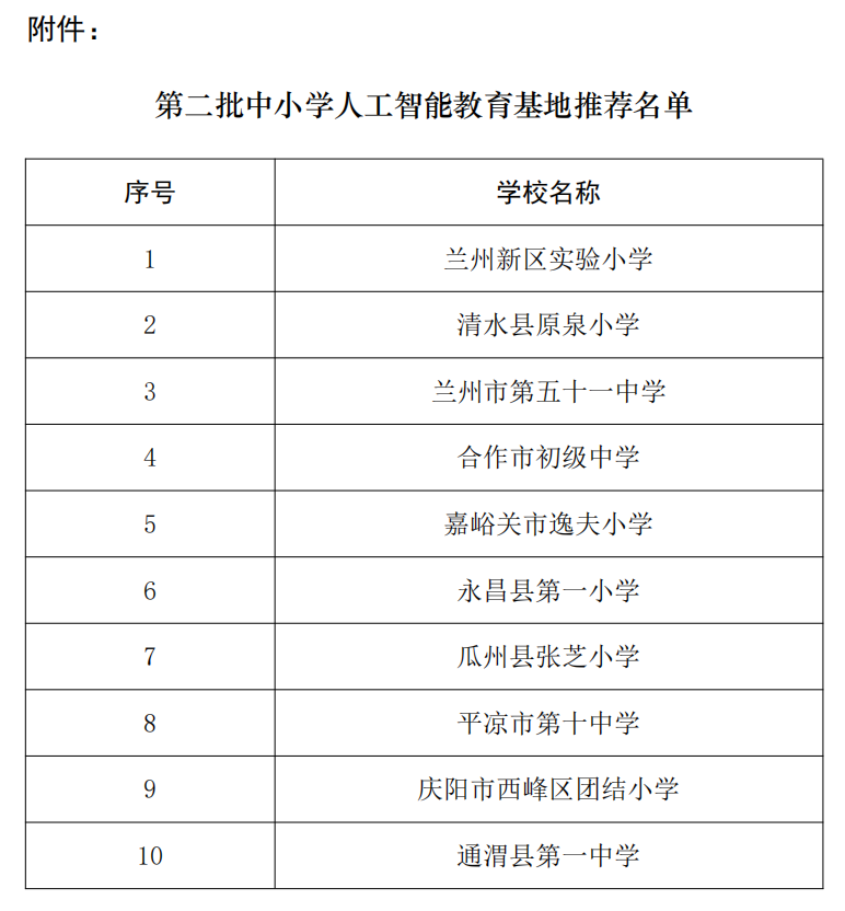 為全面落實《教育部辦公廳關于加強中小學人工智能教育的通知》和《關于開展第二批中小學人工智能教育基地推薦工作的通知》(教基廳函〔2025〕15號)要求,促進人工智能助力教育變革,推進教育強國建設,經市(州)遴選推薦,省教育廳組織專家評審,擬向教育部推薦第二批中小學人工智能教育基地10個(附件)?,F將擬推薦基地名單予以公示。