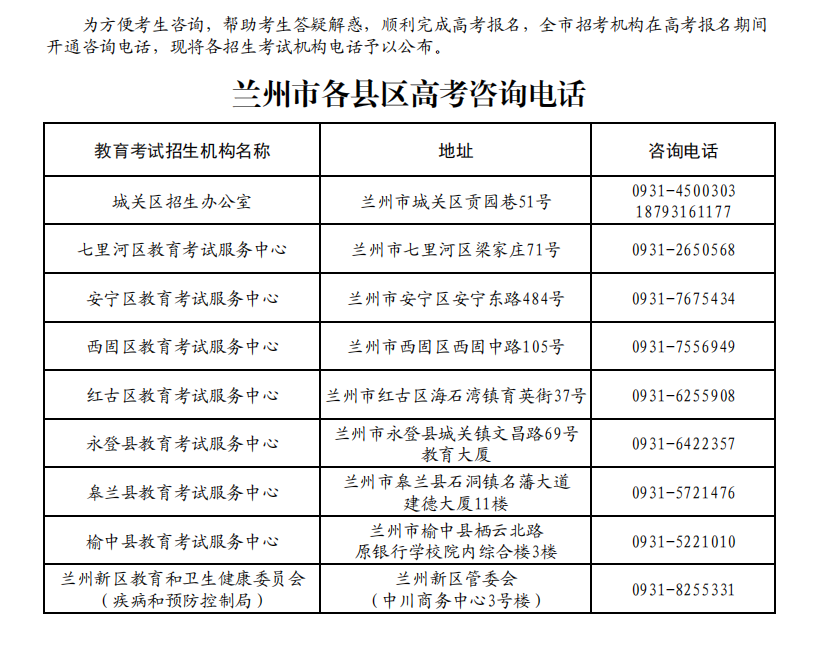 蘭州高考 | 2026年報名期間咨詢電話