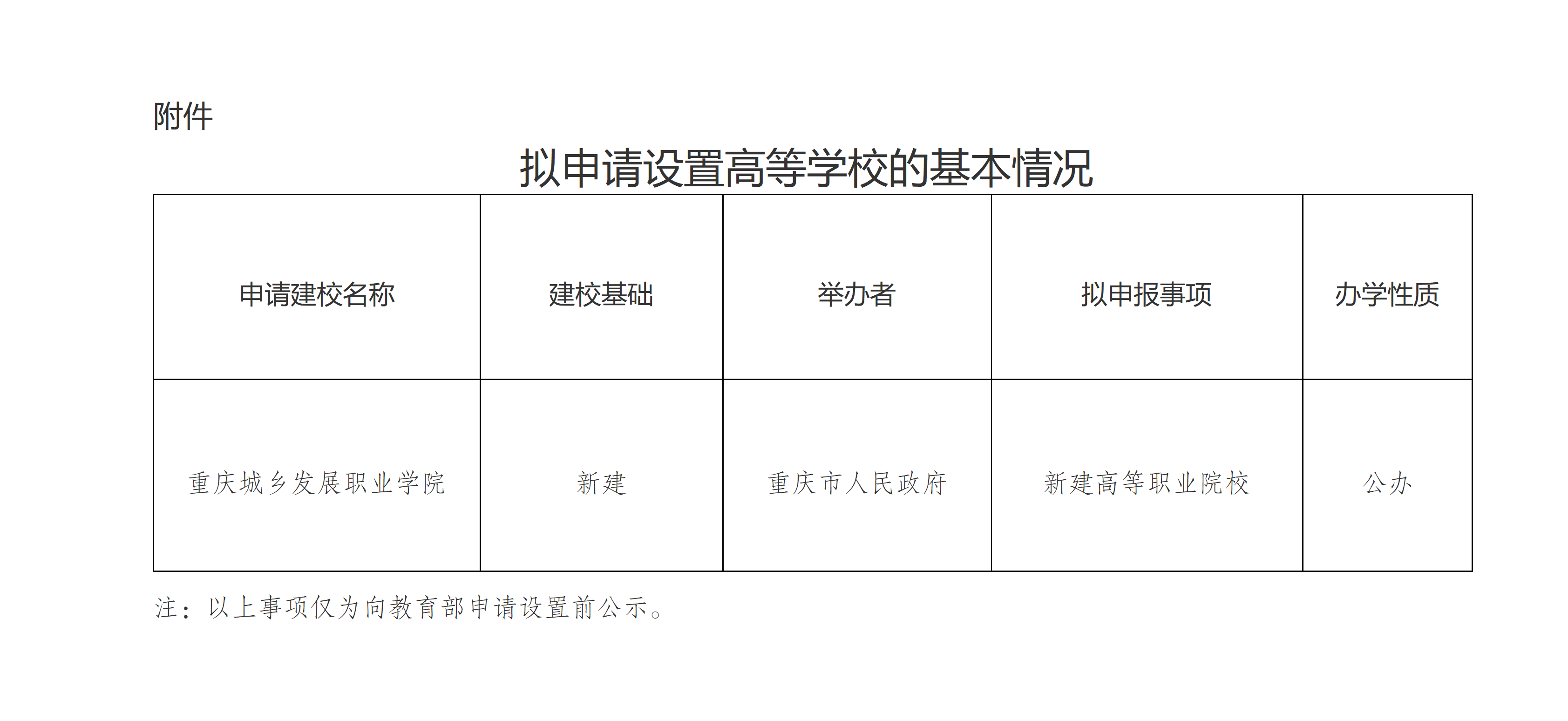 2月10日,重慶市教委網(wǎng)站發(fā)布關(guān)于擬申請?jiān)O(shè)置高等學(xué)校的公示。