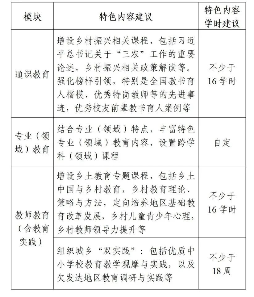 在合理設(shè)置通識教育、專業(yè)(領(lǐng)域)教育、教師教育(含教育實踐)課程結(jié)構(gòu)的基礎(chǔ)上,圍繞培養(yǎng)目標(biāo)和畢業(yè)要求,結(jié)合中西部欠發(fā)達(dá)地區(qū)教育實際,重點體現(xiàn)以下特色課程內(nèi)容。