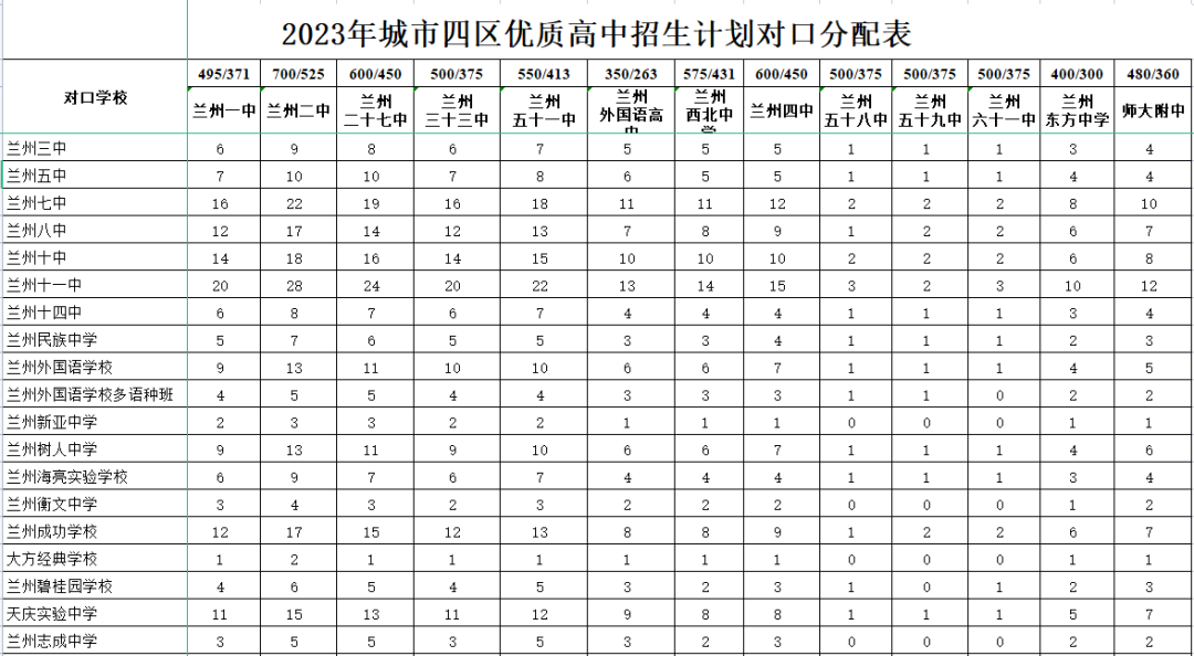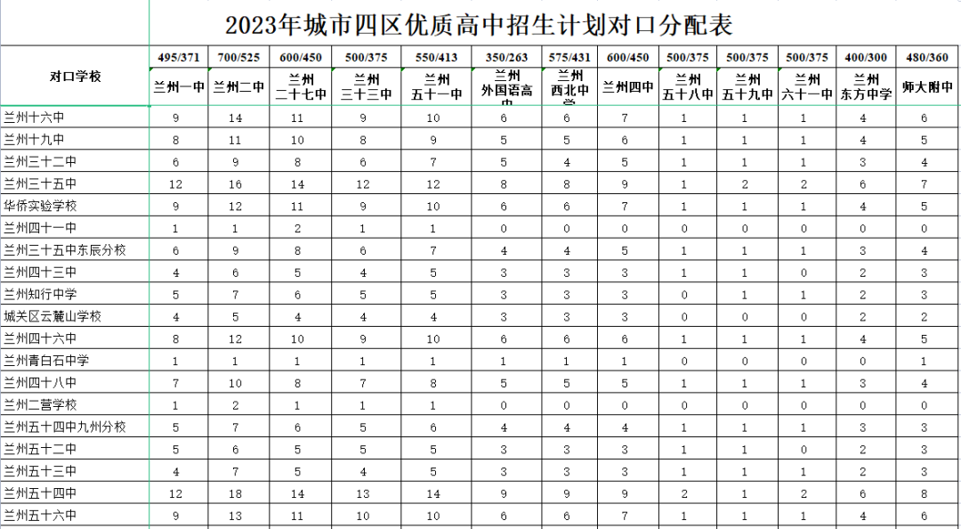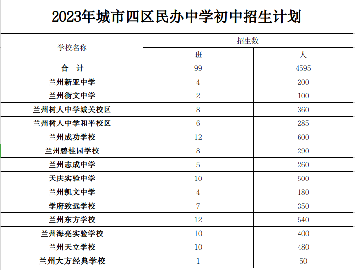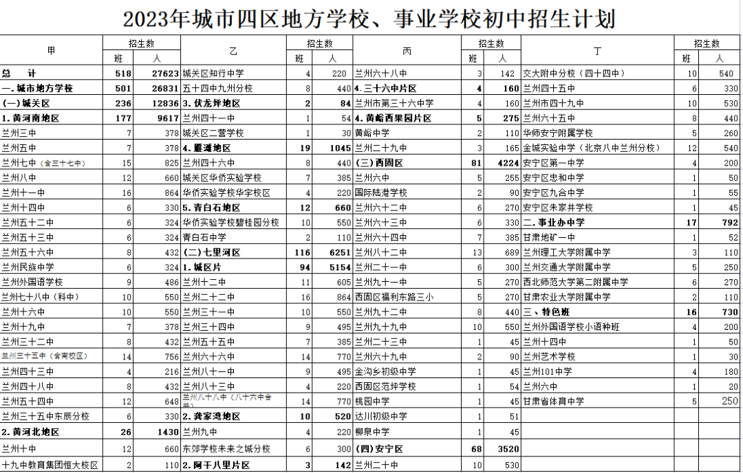 2023年蘭州市城市四區(qū)初中招生計(jì)劃